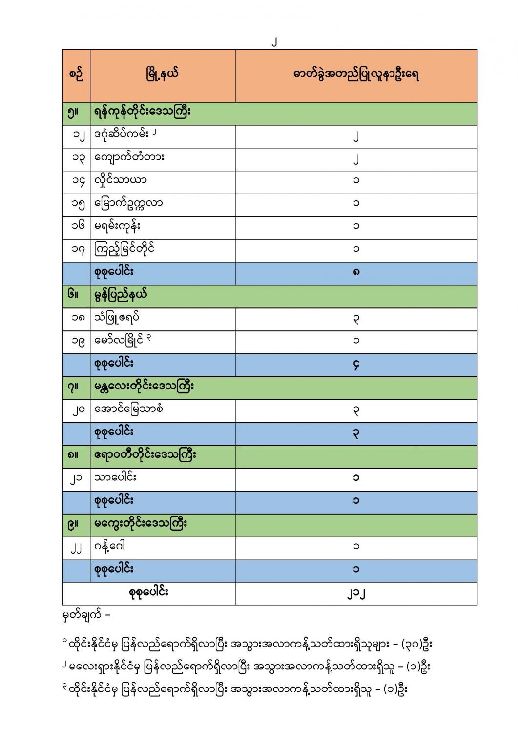ရန်ကုန်မြို့နှင့် မန္တလေးမြို့အတွက် ရည်ညွှန်းလက်ကားဈေးနှုန်းများနှင့် ပြည်ထောင်စုနယ်မြေ နေပြည်တော်၊ တိုင်းဒေသကြီး/ပြည်နယ် မြို့တော်များအတွက် ရည်ညွှန်းလက်လီဈေးနှုန်းများ