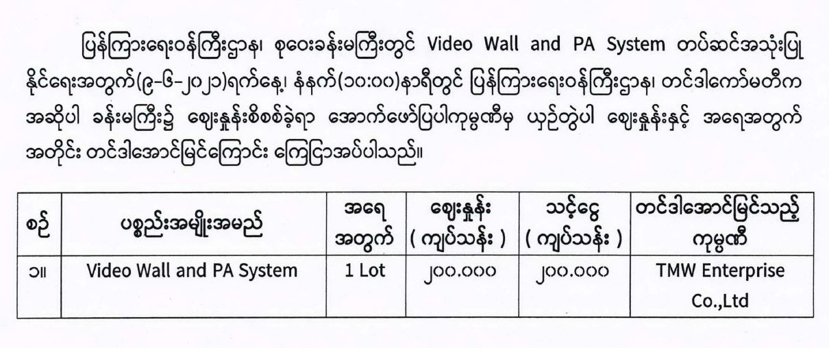 ရန်ကုန်မြို့နှင့် မန္တလေးမြို့အတွက် ရည်ညွှန်းလက်ကားဈေးနှုန်းများနှင့် ပြည်ထောင်စုနယ်မြေ နေပြည်တော်၊ တိုင်းဒေသကြီး/ပြည်နယ် မြို့တော်များအတွက် ရည်ညွှန်းလက်လီဈေးနှုန်းများ