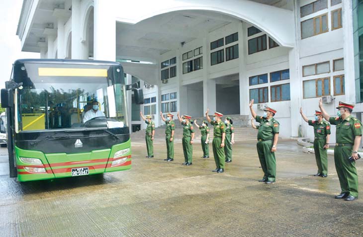 COVID-19 ရောဂါကုသရေးဌာန (ဖောင်ကြီး) တွင် တာဝန်လဲလှယ်ထမ်းဆောင်မည့် ဆေးဝန်ထမ်း တပ်ဖွဲ့ဝင်များ (၁၈) ကြိမ်မြောက် ထွက်ခွာ
