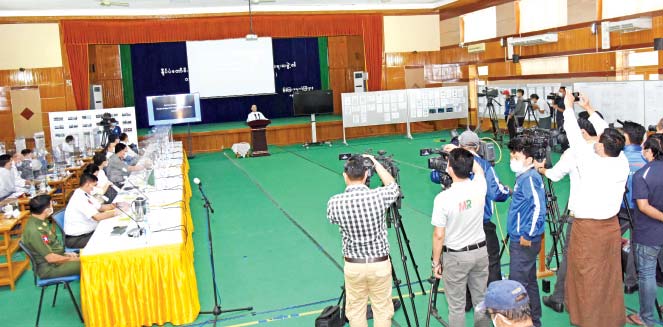 ဗိုလ်ချုပ်ဇော်မင်းထွန်းက ဆေးရုံကိစ္စနှင့် ပတ်သက်ပြီး ယခင်က ဆေးရုံ၊ ဆေးခန်းများ ဖွင့်လှစ် နိုင်ခြင်း မရှိကြောင်း ဆေးရုံ၊ ဆေးခန်းဖွင့်လှစ်နိုင်ခြင်း မရှိသည့်အချိန်တွင် တပ်မတော်ဆေးရုံများက ကုသ ပေးခဲ့ကြောင်း၊ ယခု အချိန်တွင် ဆေးရုံ၊ ဆေးခန်းများ တော်တော်များများ ပြန်လည်ဖွင့်လှစ်ခဲ့ပြီဖြစ်ကြောင်း၊ တပ်မတော် ဆေးရုံ အနေဖြင့် လည်း လိုအပ်သလောက် ဆက်လက်ကုသပေးနေကြောင်း၊ ဆေးရုံ ဆေးခန်းများ၌ ဆရာဝန်၊ ဆရာမ အချို့ CDM လုပ်နေသည့်အတွက် မတတ်နိုင်ခြင်းဖြစ်ကြောင်း၊ အပြည့်အဝ မဖွင့်လှစ်နိုင်သည့် ဆေးရုံများလည်း ရှိကြောင်း ဥပမာအားဖြင့် အထူးကုသဆောင်များ မဖွင့်နိုင်သည့် အခြေအနေမျိုးရှိကြောင်း၊ သို့သော် ကျန်းမာရေး ဝန်ထမ်းအင်အား ဆရာဝန်အင်အားနှင့် လိုက်လျောညီထွေအောင်လုပ်ပြီး ကြိုးပမ်းဆောင်ရွက် လျက်ရှိသည်ဟု ပြောလိုကြောင်း ပြန်လည်ဖြေကြား သည်။