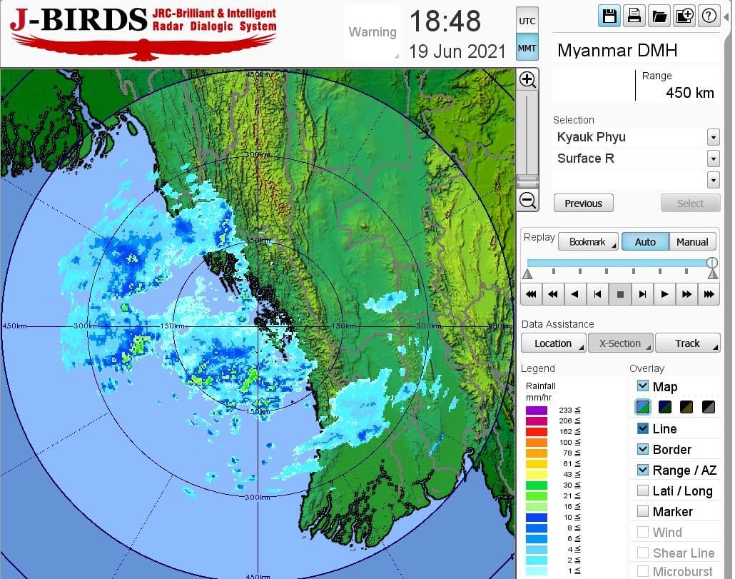 ဘင်္ဂလားပင်လယ်အော်အခြေအနေ။ကပ္ပလီပင်လယ်ပြင်နှင့် ဘင်္ဂလားပင်လယ်အော်အရှေ့တောင်ပိုင်းတို့တွင်မုတ်သုံလေအားနည်းနေပြီး၊ ကျန်ဘင်္ဂလားပင်လယ်အော်တွင် မုတ်သုံလေ အားအသင့်အတင့်မှ အားကောင်း နေပါသည်။