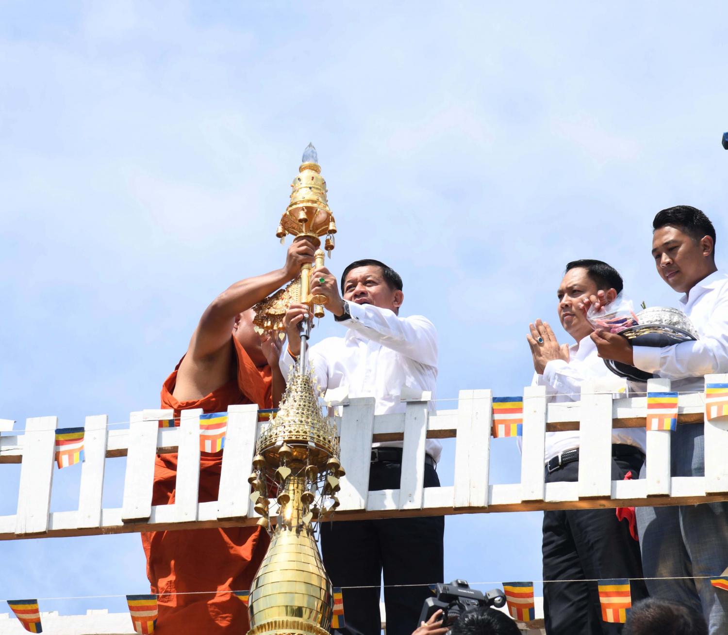 ဦးစွာ အခမ်းအနားကို နမောတဿ သုံးကြိမ်ရွတ်ဆို ဘုရားကန်တော့ဖွင့်လှစ်ပြီး မင်္ဂလာအချိန်တွင် ကျောင်းထိုင်ဆရာတော်အမှူးပြု၍ နိုင်ငံတော်စီမံအုပ်ချုပ်ရေး ကောင်စီ ဥက္ကဋ္ဌ၊ တပ်မတော် ကာကွယ်ရေးဦးစီးချုပ်နှင့် အဖွဲ့ဝင်များက ရတနာစိန်ဖူး တော်၊ ငှက်မြတ်နားတော်နှင့် ရွှေထီးတော်တို့အား ရွှေတိဂုံစေတီတော်ပုံတူတော်မြတ် အထွတ်သို့ပင့်ဆောင်တင်လှူပူဇော်ကြသည်။ ထို့နောက် အမွှေးနံ့သာရည်များ ပက်ဖျန်း ပူဇော်ကာ ရတနာစိန်ဖူးတော်၊ ငှက်မြတ်နားတော်နှင့် ရွှေထီးတော် တင်လှူပူဇော်မှု အောင်မြင်ခြင်း အထိမ်းအမှတ်အဖြစ် ရတနာရွှေမိုး၊ ငွေမိုးများ ရွာသွန်းဖြိုးကြသည်။