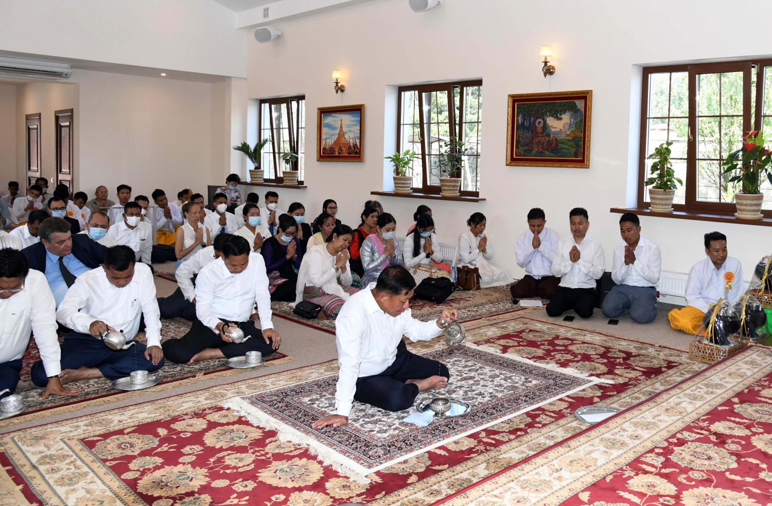 ရုရှားဖက်ဒရေးရှင်းနိုင်ငံ၊ မော်စကိုမြို့ရှိ မြန်မာထေရဝါဒဗုဒ္ဓဝိဟာရ(မော်စကို)ရှိ ရွှေတိဂုံစေတီတော်ပုံ တူတော်မြတ်အား ရတနာစိန်ဖူးတော်၊ ငှက်မြတ်နားတော်၊ ရွှေထီး တော်တင်လှူပူဇော်ခြင်းနှင့် သဒ္ဓမ္မ ဇောတိက သိမ်တော်မြတ်အား ရေစက်သွန်းချ လှူဒါန်းခြင်း မင်္ဂလာအခမ်းအနားများကို ဒေသစံတော်ချိန် မွန်းလွဲပိုင်းတွင် ကျင်းပပြုလုပ်ရာ ကျောင်းထိုင်ဆရာတော် မဟာသဒ္ဓမ္မဇောတိကဓဇ ဒေါက်တာ ဘဒ္ဒန္တ အစ္ဆရိယ အမှူးပြုသည့် ဆရာတော်၊သံဃာတော်များကြွရောက် ချီးမြှင့်တော်မူကြပြီး နိုင်ငံတော် စီမံအုပ်ချုပ်ရေးကောင်စီ ဥက္ကဋ္ဌ၊ တပ်မတော်ကာကွယ်ရေးဦးစီးချုပ် ဗိုလ်ချုပ်မှူးကြီး မင်းအောင်လှိုင် ဦးဆောင်သည့် ကိုယ်စားလှယ် အဖွဲ့ဝင်များ၊ မြန်မာ့တပ်မတော်မှ ပညာတော်သင် သင်တန်းသားအရာရှိများ၊ ဗုဒ္ဓဘာသာဝင် ရုရှား နိုင်ငံသားများ တက်ရောက် ကြည်ညိုကြသည်။