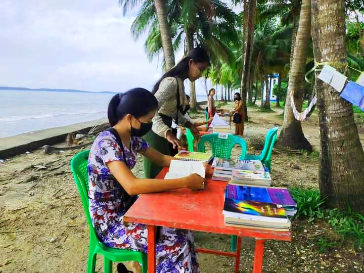 ကျောက်ဖြူမြို့ရှိ လူငယ်၊ လူရွယ်များ စာပေလေ့လာဖတ်ရှုမှု တိုးပွားလာစေရန် ပင်လယ်ကမ်းခြေ၌ ရွေ့လျားစာကြည့်တိုက် Mobile Library ဖွင့်လှစ်ဆောင်ရွက်