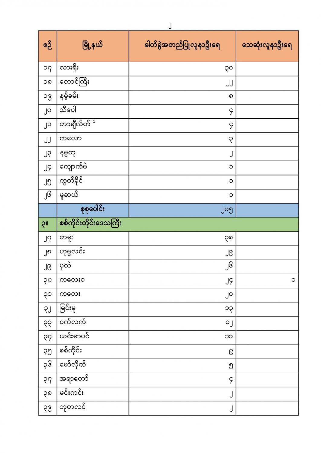 (၂၇-၆-၂၀၂၁)ရက်နေ့၊ ည (၈:၀၀)နာရီမှ (၂၈-၆-၂၀၂၁)ရက်နေ့၊ ည (၈:၀၀)နာရီအတွင်း တွေ့ရှိရသော COVID-19 ဓာတ်ခွဲအတည်ပြုလူနာ (၁,၂၂၅) ဦး၏ မြို့နယ်အလိုက် တွေ့ရှိရမှုအခြေ အနေမှာ အောက်ပါအတိုင်း ဖြစ်ပါသည်