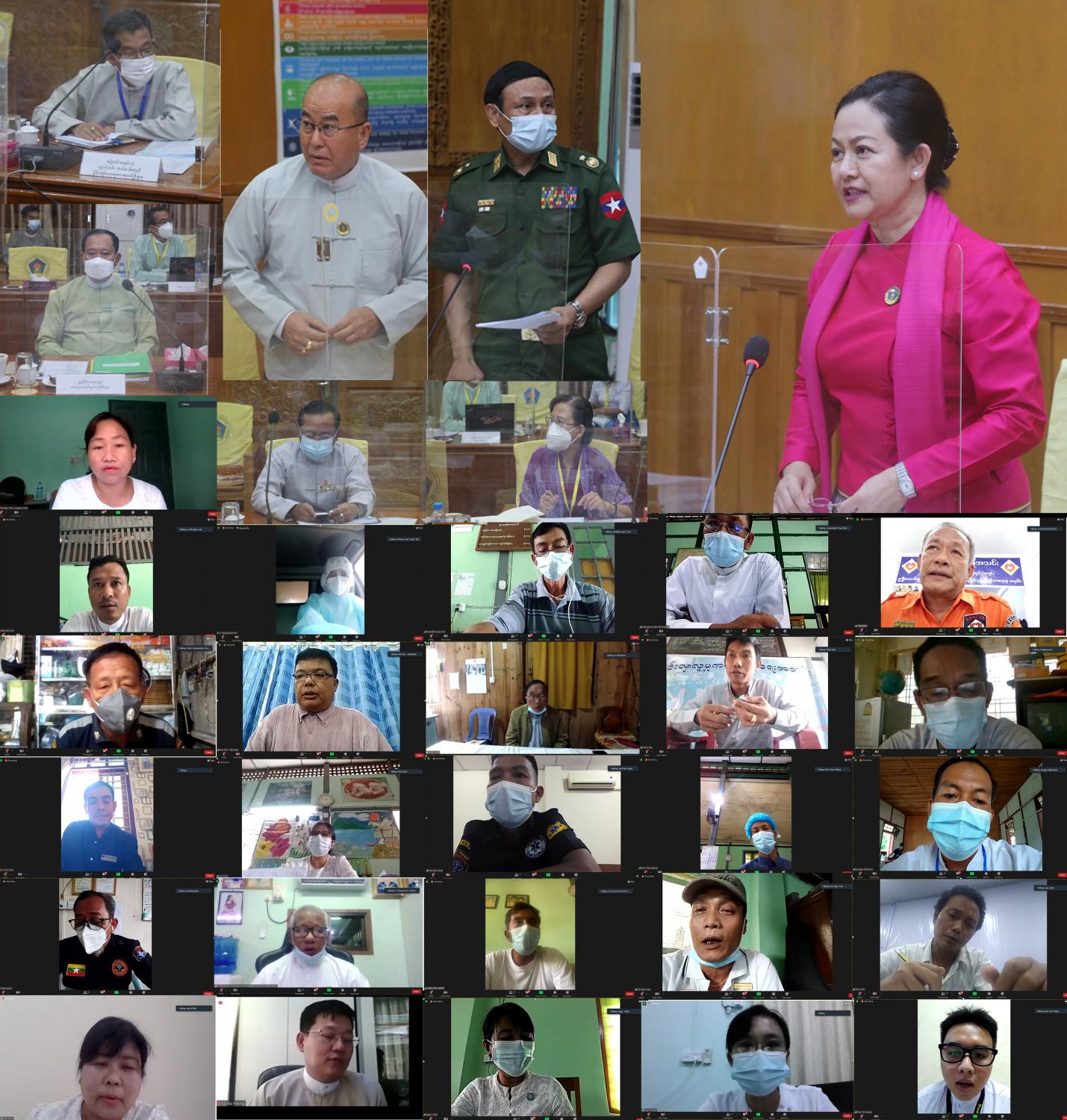 လတ်တလော ကိုဗစ်-၁၉ ရောဂါ ကူးစက်မှုများပြားနေသည့် တိုင်းဒေသကြီး/ ပြည်နယ်များရှိ စေတနာ့ဝန်ထမ်းများ၊ ပရဟိတအဖွဲ့အစည်းများနှင့် တွေ့ဆုံညှိနှိုင်းသည့် အစည်းအဝေးကို ယနေ့တွင် နေပြည်တော်ရှိ လူမှုဝန်ထမ်း၊ ကယ်ဆယ်ရေးနှင့် ပြန်လည်နေရာချထားရေးဝန်ကြီးဌာန တွင် အွန်လိုင်းဖြင့် ကျင်းပသည်။