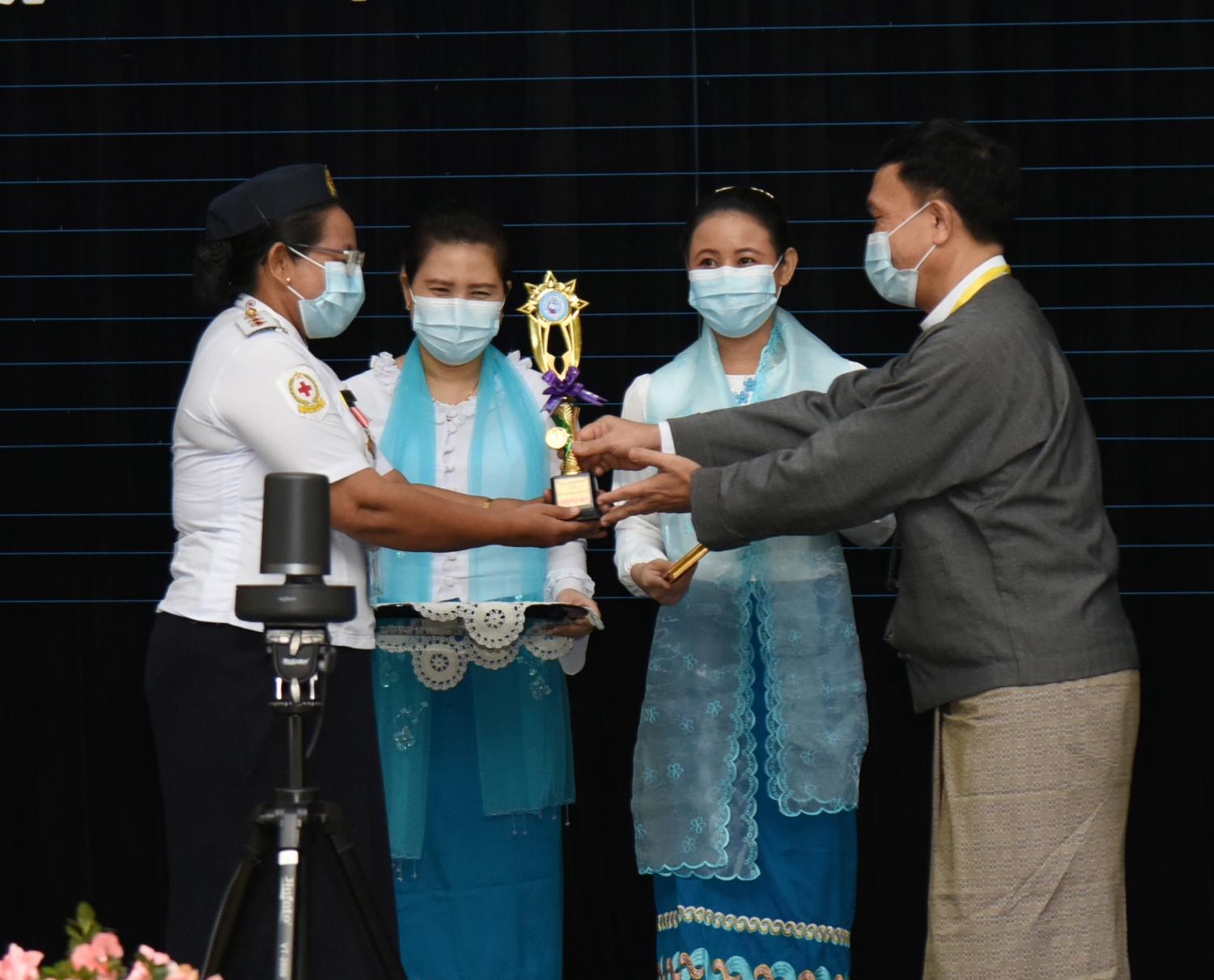 ထို့နောက် ကဏ္ဍအလိုက် ထူးချွန်အမျိုးသမီးများအား ဆုများပေးအပ်ချီးမြှင့်ရာ ကောင်စီ အဖွဲ့ဝင် ဒေါ်အေးနုစိန်က ၂၀၂၀ ပြည့်နှစ်၊ ထူးချွန်အမျိုးသမီးအရာရှိဆုရရှိသူ အမျိုးသမီး ဗိုလ်လောင်း သင်တန်း အမှတ်စဉ်(၇)မှ အကောင်းဆုံးဗိုလ်လောင်းဆုရ ဗိုလ်ဧပရယ်ချို(ရေ-၅၆၁၂) ကို လည်းကောင်း၊ ကောင်စီအဖွဲ့ဝင် Jeng Phang နော်တောင်က ၂၀၂၀ ပြည့်နှစ် ထူးချွန်အမျိုးသမီးရဲမေဆုရ ဒုတိယရဲမှူးကြီး ဝင်းနီလာကိုလည်းကောင်း၊ ကောင်စီအဖွဲ့ဝင် ဦးရွှေကြိမ်းက ထူးချွန်ကြက်ခြေနီ အမျိုးသမီးဆုရရှိသူ ကြက်ခြေနီ မြို့နယ်တပ်ဖွဲ့မှူး ဒေါ်စမ်းစမ်းမော် တို့ကိုလည်းကောင်း ဆုများပေးအပ်ချီးမြှင့်ကြသည်။