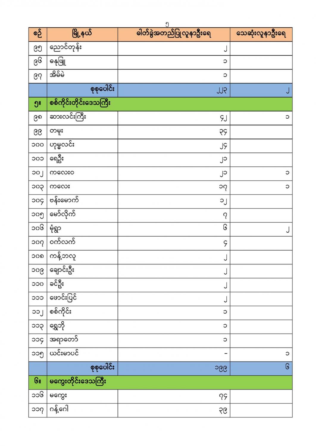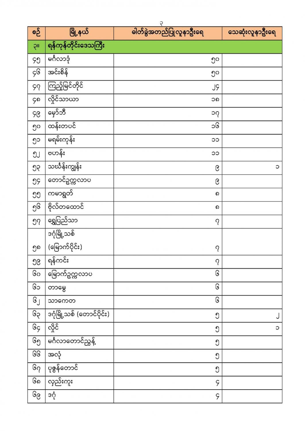 (၃-၇-၂၀၂၁)ရက်နေ့၊ ည (၈:၀၀) နာရီမှ (၄-၇-၂၀၂၁)ရက်နေ့၊ ည (၈:၀၀) နာရီအတွင်း တွေ့ရှိရသော COVID-19 ဓာတ်ခွဲအတည်ပြုလူနာ (၂,၃၁၈) ဦး၏ မြို့နယ်အလိုက် တွေ့ရှိရမှု အခြေ အနေမှာ အောက်ပါအတိုင်း ဖြစ်ပါသည် -