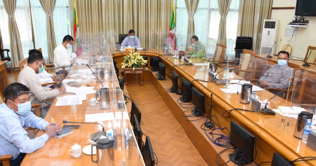 အစည်းအဝေးတွင် ကိုဗစ်-၁၉ ရောဂါ ကူးစက်မှု Third wave ကူးစက်မှုနှုန်း မြင့်တက်လာ ခြင်းနှင့်အတူ ရောဂါကာကွယ်ရေးပစ္စည်းစျေးနှုန်းများ မြင့်တက်မှုမရှိစေရေး၊ စျေးကွက်အတွင်း စျေးကစားမှု များမရှိစေရေး၊ တင်သွင်းမှု လွယ်ကူလျင်မြန်ချောမွေ့စေရေးနှင့် COVID-19 ရောဂါကာကွယ် ကုသရေး ရောဂါကာကွယ်ရေးသုံးပစ္စည်းများကို အရေးကြီး ကုန်စည်အဖြစ် သတ်မှတ်၍ အမိန့်ကြော်ငြာစာ ထုတ်ပြန်ကာ ဈေးကွက်အတွင်း ဈေးနှုန်း အဆမတန်မြှင့်တင် ရောင်းချမှု မရှိစေရေးအတွက် တိုင်းဒေသကြီးနှင့် ပြည်နယ်များအလိုက် စစ်ဆေးဆောင်ရွက် လျက်ရှိပြီး၊ စစ်ဆေးတွေ့ရှိပါက ဥပဒေအရ အရေးယူဆောင်ရွက်သွား မည်ဖြစ်ကြောင်း၊ ဈေးကွက်အတွင်း အဓိကလိုအပ်လျက်ရှိသော Face Mask နှင့် အောက်စီဂျင်ဗူးများအား အမြန်ဆုံး တင်သွင်းဖြည့်ဆည်းနိုင်ရေး ညှိနှိုင်းဆောင်ရွက်လျက်ရှိသည့်အတွက်  စိုးရိမ်ပူပန်မှု မရှိစေရေး ပြည်သူများသို့ အသိပေးသွားရန် ညှိနှိုင်းဆွေးနွေးခဲ့ကြကြောင်း သိရသည်။