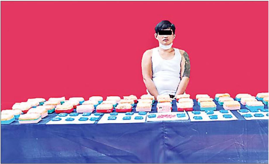 မူးယစ်ဆေးဝါး တားဆီးနှိမ်နင်း ရေး ရဲတပ်ဖွဲ့မှ တပ်ဖွဲ့ဝင်များ ပါဝင်သော ပူးပေါင်းအဖွဲ့သည် ဇူလိုင် ၆ ရက် နံနက် ၁၁ နာရီ ၁၅ မိနစ်တွင် ဖားကန့်မြို့နယ် လုံးခင်းကျေးရွာအနီးဆောင်းချိန် မှော်ဆီဇာကျေးရွာ သွားကားလမ်းတွင် ချာလီ မောင်းနှင်လာသည့် ဆိုင်ကယ်ကို ရပ်တန့်စစ်ဆေး ရှာဖွေရာ စိတ်ကြွရူးသွပ်ဆေးပြား ၁၁၄၀၀ကိုလည်းကောင်း၊ ယင်းနေ့ ညနေ ၅ နာရီတွင် မြစ်ကြီးနားမြို့ ပမ္မတီးရပ်ကွက် အမှတ်(၁/၄၃) နေ ဒေါင်ခေါင်း၏ နေအိမ်သို့ ဝင်ရောက်ရှာဖွေရာ ဘိန်းဖြူ သုည ဒသမ ၄၈ ကီလို၊ စိတ်ကြွ ရူးသွပ်ဆေးပြား ၅၅၅၀ ကို လည်းကောင်း၊ ထို့နောက် ဇူလိုင် ၆ ရက် မွန်းလွဲ ၃ နာရီခွဲတွင် ကွမ်းလုံမြို့ ဉာဏသိပ္ပံရပ်ကွက်ရှိ ကျင်းချန်၏နေအိမ်သို့ ဝင်ရောက် ရှာဖွေရာ စိတ်ကြွရူးသွပ်ဆေးပြား ၂၆၀၀ ၊ ဘိန်းဖြူ သုည ဒသမ ၀၂၄ ကီလိုကို လည်းကောင်း။ ။