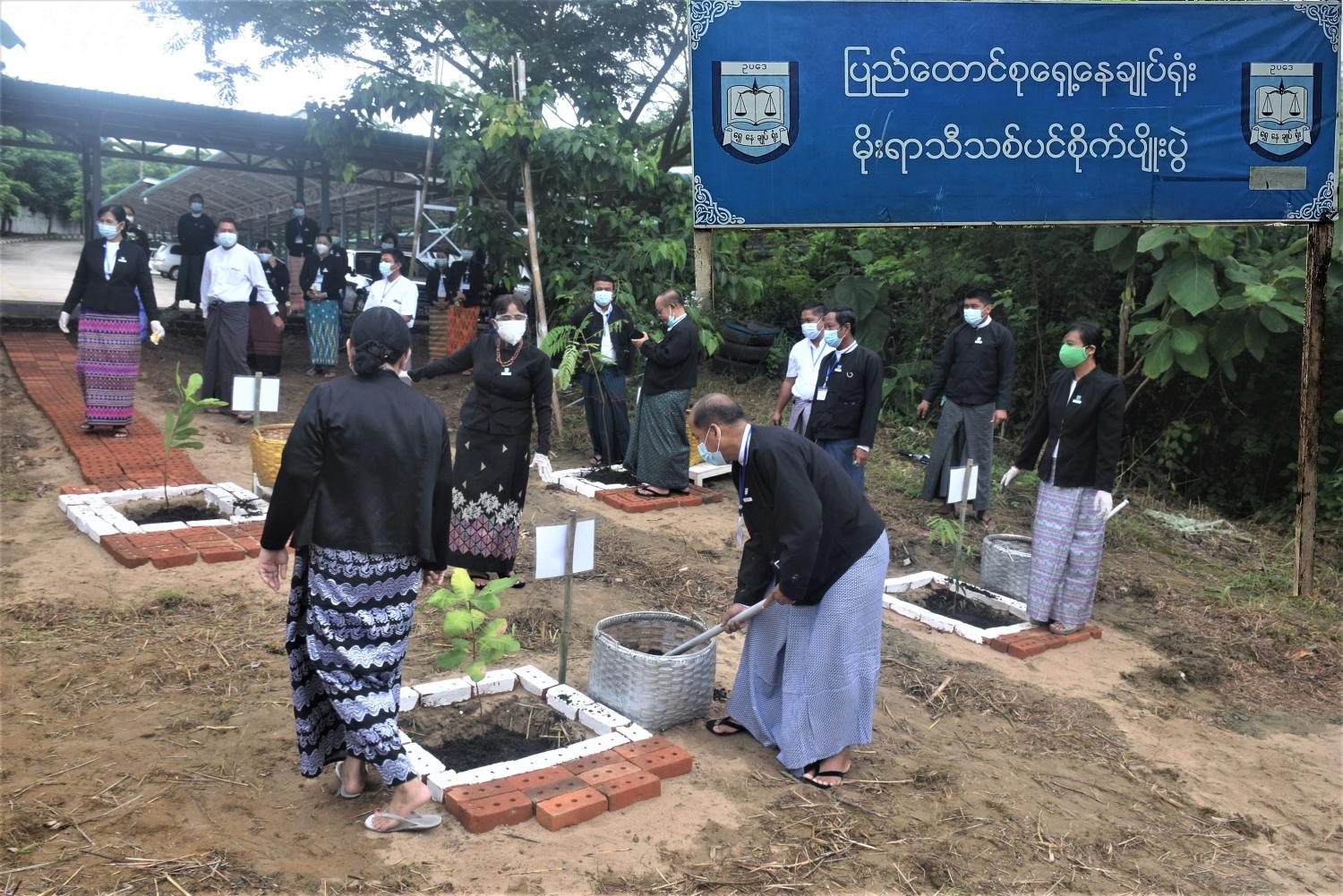 သစ်ပင်စိုက်ပျိုးပွဲတွင် ပြည်ထောင်စုရှေ့နေချုပ် ဒေါက်တာသီတာဦးက သီဟိုဠ်ပင်ကို စိုက်ပျိုး ပေးပြီး ဒုတိယရှေ့နေချုပ် ဦးစန်းလွင်က စိန်ပန်းပင်ကိုလည်းကောင်း၊ ညွှန်ကြားရေးမှူးချုပ်များ၊ ဒုတိယ ညွှန်ကြားရေးမှူးချုပ်များနှင့် ညွှန်ကြားရေးမှူးများက ကျွန်း၊ ငု၊ ငုချယ်ရီ၊ ကံ့ကော်၊ ခရေ၊ သပြေနှင့် ပျဉ်းမပင် တို့ကိုလည်းကောင်း သတ်မှတ်မြေနေရာ အသီးသီး၌ စိုက်ပျိုးကြသည်။