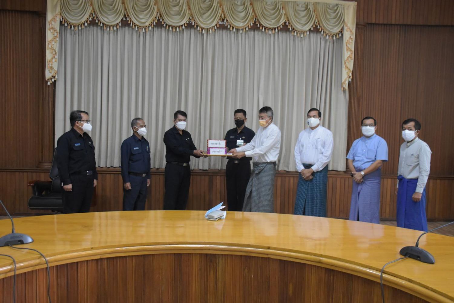 ရန်ကုန်မြို့တော်ဝန်က ကျေးဇူးတင်စကားပြောကြားရာတွင် ရန်ကုန်မြို့တော် စည်ပင် သာယာရေးကော်မတီ၊ မြို့ပြပတ်ဝန်းကျင် ထိန်းသိမ်းရေးနှင့် သန့်ရှင်းရေးဌာနမှ ဝန်ထမ်း များအနေဖြင့် ယခုကဲ့သို့ ကိုဗစ်-၁၉ ကမ္ဘာ့ကပ်ရောဂါ ကျရောက်နေချိန်တွင် ကိုဗစ်-၁၉ ရောဂါကုသသည့် ဆေးရုံများ၊ စင်တာများမှ ဘေးအန္တရာယ်ရှိ အမှိုက်များသိမ်းဆည်း မီးရှို့ဖျက်ဆီးခြင်း၊ သေဆုံးလူနာများအား သင်္ဂြိုလ်ပေးခြင်း စသည့် အလွန်အန္တရာယ်များ သည့်တာဝန်များကို ထမ်းဆောင်နေရသည့်အတွက် အသက်ကိုပဓါနမထား၊ ကိုယ်ကျိုးမငဲ့ပဲ တာဝန်ထမ်းဆောင်နေသည့် စေတနာရှင် ဝန်ထမ်းများဖြစ်ကြောင်း၊ ယခုလိုသန့်ရှင်းရေး ဝန်ထမ်းများကို စေတနာထားပြီး လှူဒါန်းခြင်းသည်လည်း ရန်ကုန်မြို့တော် စည်ပင် သာယာရေးကော်မတီ၏ ကိုဗစ်-၁၉ ရောဂါ ကာကွယ်ထိန်းချုပ်ရေး တာဝန်ကို ဖြည့်ဆည်း ပေးရာရောက်သည့်အတွက် များစွာကျေးဇူးတင်ရှိကြောင်း ပြောကြားသည်။