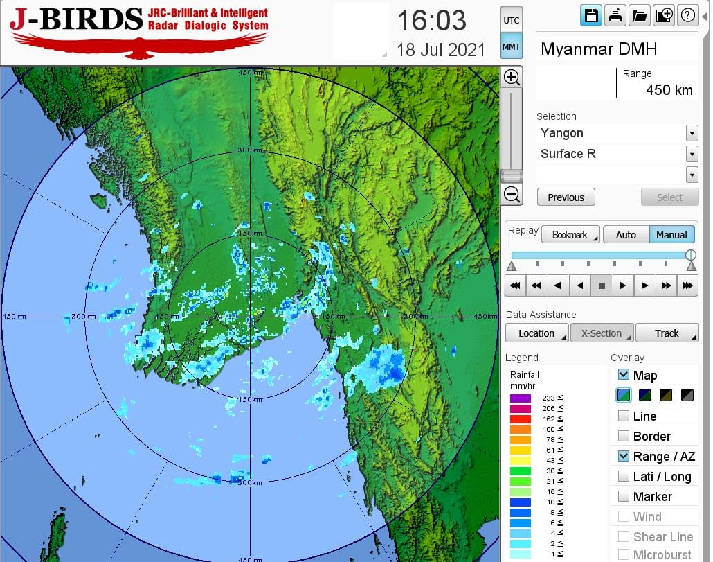 ဘင်္ဂလားပင်လယ်အော်အ‌ခြေအနေ။ ကပ္ပလီပင်လယ်ပြင်နှင့် ဘင်္ဂလားပင်လယ်အော်တောင်ပိုင်းတို့တွင် မုတ်သုံလေ အားကောင်းနေပြီး၊ ကျန်ဘင်္ဂလားပင်လယ်အော်တွင် မုတ်သုံလေ အားနည်းနေပါသည်။