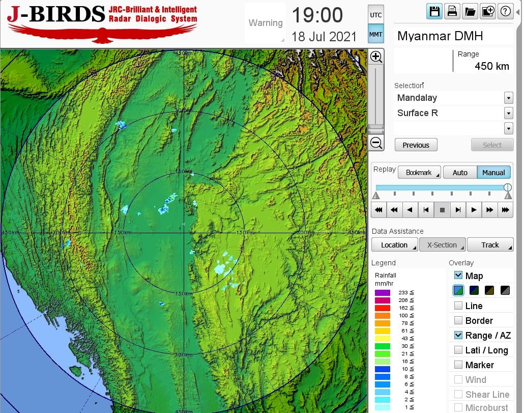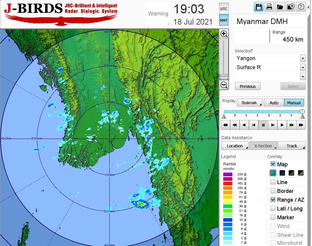 မနက်ဖြန်မွန်းတည့်ချိန်အထိခန့်မှန်းချက်။စစ်ကိုင်းတိုင်းဒေသကြီးအောက်ပိုင်း၊ မန္တလေးတိုင်းဒေသကြီး၊ မကွေး တိုင်းဒေသကြီးနှင့် ကယားပြည်နယ်တို့တွင် နေရာကျဲကျဲ၊ နေပြည်တော်၊ ကချင်ပြည်နယ်၊ ရှမ်းပြည်နယ်(အရှေ့ပိုင်း)၊ ချင်းပြည်နယ်နှင့် ရခိုင်ပြည်နယ်တို့တွင် နေရာစိပ်စိပ်နှင့် ကျန်တိုင်းဒေသကြီးနှင့် ပြည်နယ်တို့တွင်နေရာအနှံ့အပြား မိုးထစ်ချုန်းရွာပြီး၊ စစ်ကိုင်းတိုင်းဒေသကြီးအထက်ပိုင်း၊ ပဲခူးတိုင်းဒေသကြီး၊ ရန်ကုန်တိုင်းဒေသကြီး၊ တနင်္သာရီတိုင်းဒေသကြီး၊ ကချင်ပြည်နယ်၊ ကရင်ပြည်နယ်နှင့် မွန်ပြည်နယ်တို့တွင် နေရာကွက်၍ မိုးကြီးနိုင်ပါသည်။ ရွာရန်ရာနှုန်းပြည့် ဖြစ်ပါသည်။