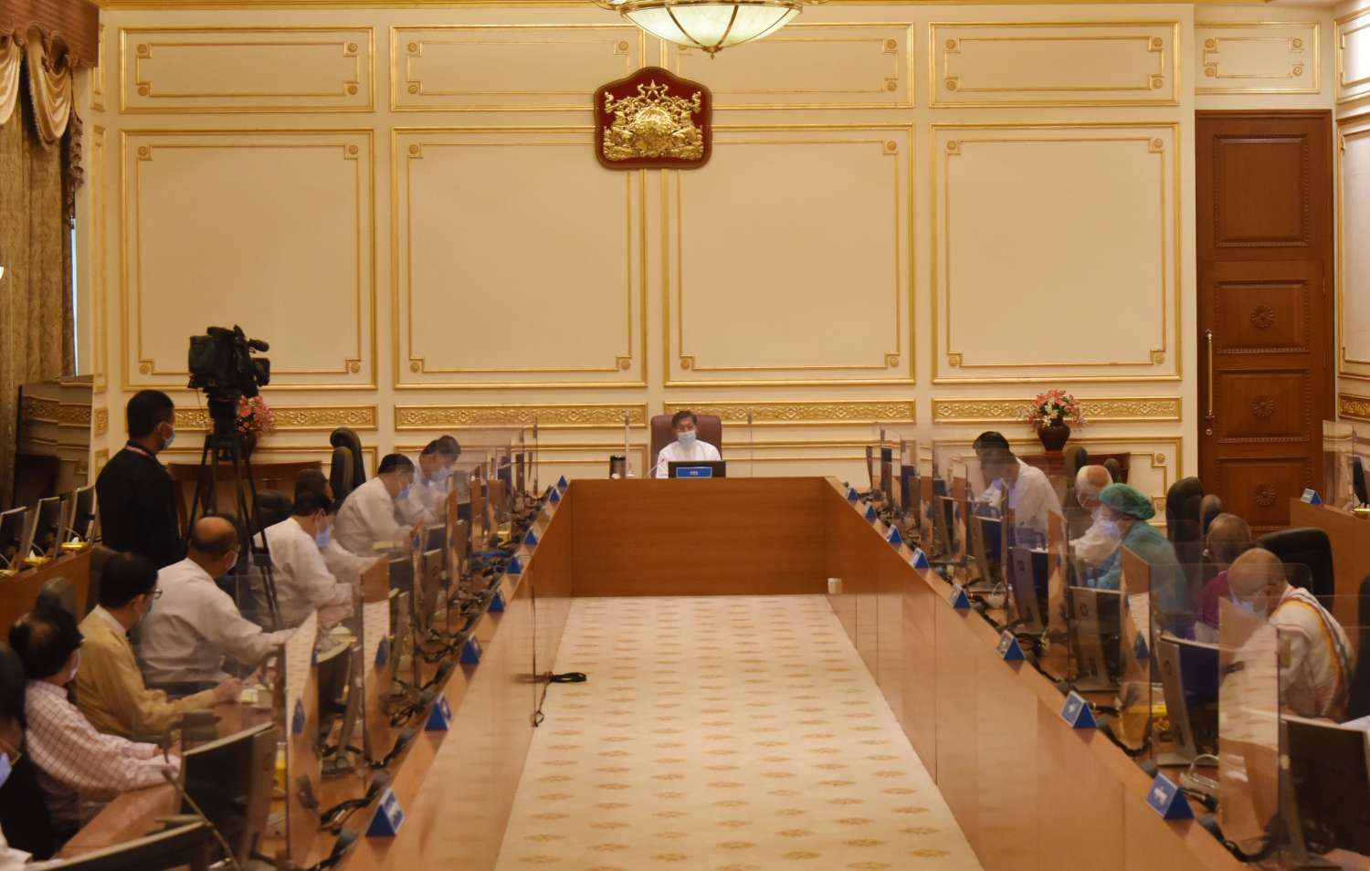 ဦးစွာ နိုင်ငံတော်စီမံအုပ်ချုပ်ရေးကောင်စီဥက္ကဋ္ဌ၊ နိုင်ငံတော်ဝန်ကြီးချုပ်က အဖွင့်အမှာစကား ပြောကြားရာတွင် ယခု အခါ ကိုဗစ် - ၁၉ ရောဂါဖြစ်ပွားမှုနှုန်း မြင့်မားလျက်ရှိသော်လည်း မျက်ခြည်မပြတ်ဆောင်ရွက် နေသလို နိုင်ငံလုံခြုံ ရေးနှင့် နိုင်ငံရေးအခြေအနေအားလုံးအား စနစ်တကျစီမံဆောင်ရွက်လျက်ရှိကြောင်း၊ အချို့သောအကြမ်းဖက် တိုက်ခိုက်မှုများမှအပ တည်ငြိမ်မှုရှိလာပြီဖြစ်ကြောင်း၊ အဆိုပါအကြမ်းဖက် မှုများနှင့် ပတ်သက်၍လည်း သက်ဆိုင်ရာ တိုင်းဒေသကြီးနှင့် ပြည်နယ်များအလိုက် သက်ဆိုင်ရာ အုပ်ချုပ် ရေးအဖွဲ့အစည်းများနှင့် လုံခြုံရေးတာဝန်ထမ်းဆောင် လျက်ရှိသော အဖွဲ့အစည်းများ ပူးပေါင်းဆောင်ရွက် မှုကြောင့် ယခုဩဂုတ်လမှစ၍ မရှိသလောက်ဖြစ်လာပြီ ဖြစ်ကြောင်း။