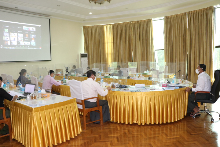 ထို့နောက် တိုင်းဒေသကြီး/ ပြည်နယ် ဦးစီးမှူးများက စီမံကိန်းလုပ်ငန်းဆောင်ရွက် ပြီးစီးမှု၊ တွေ့ကြုံရသည့် အားသာချက်၊ အားနည်းချက်များကို ဗီဒီယိုကွန့်ဖရင့်စနစ်ဖြင့်ရှင်းလင်း တင်ပြကြရာ ပြည်ထောင်စုဝန်ကြီးက လိုအပ်သည်များ ပေါင်းစပ်ညှိနှိုင်းဆောင်ရွက်ပေးခဲ့ကြောင်း သိရသည်။