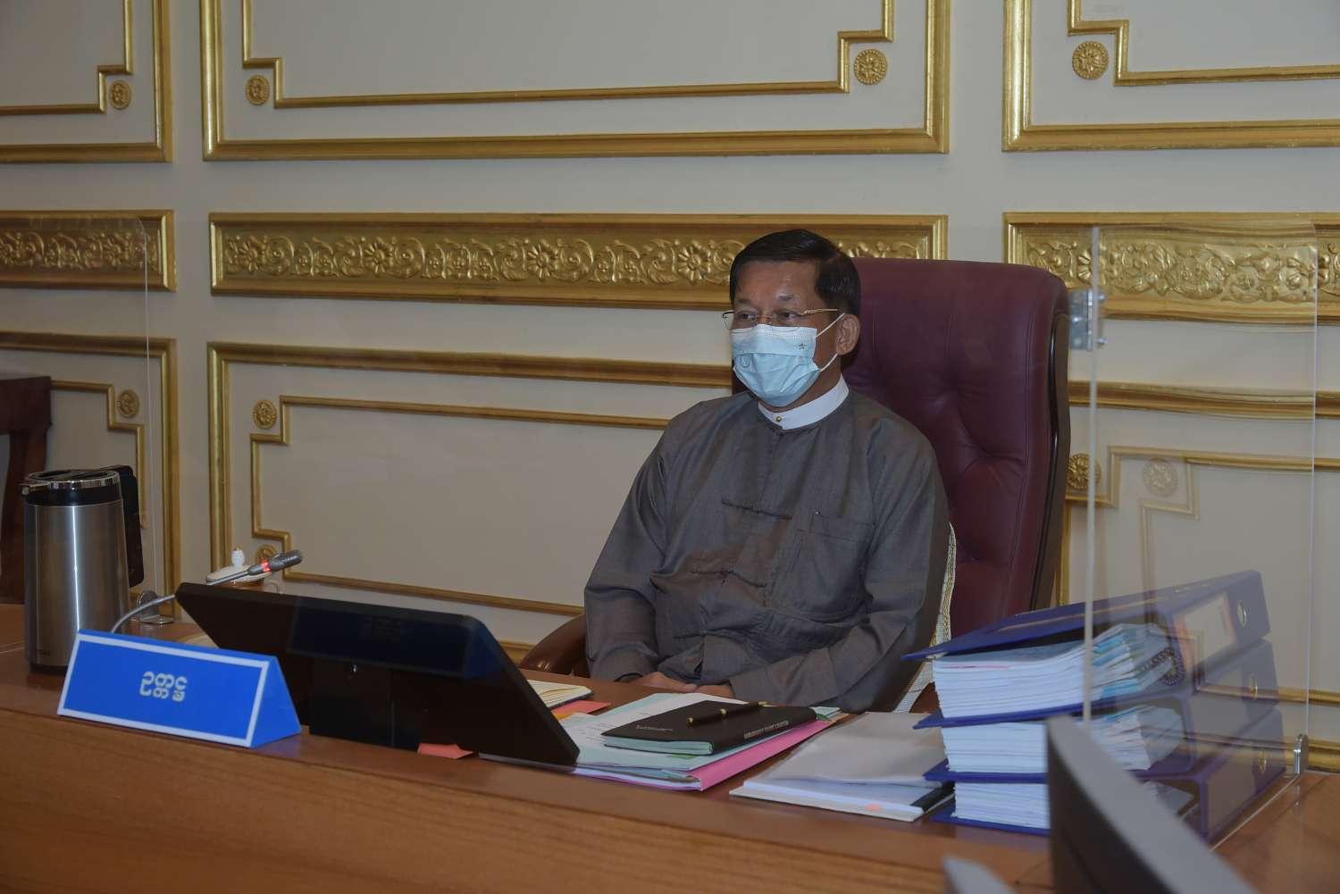 ပြည်ထောင်စုသမ္မတမြန်မာနိုင်ငံတော် လုံခြုံရေး၊ တည်ငြိမ်အေးချမ်းရေးနှင့် တရားဥပဒေစိုးမိုး ရေးကော်မတီ အစည်းအဝေးအမှတ် စဉ်(၄/၂၀၂၁)အား ယနေ့ မွန်းလွဲပိုင်းတွင် နေပြည်တော်ရှိ နိုင်ငံတော်စီမံအုပ်ချုပ်ရေးကောင်စီဥက္ကဋ္ဌရုံး အစည်းအဝေး ခန်းမ၌ ကျင်းပရာ လုံခြုံရေး၊ တည်ငြိမ်အေးချမ်းရေးနှင့် တရားဥပဒေစိုးမိုးရေး ကော်မတီဥက္ကဋ္ဌ၊ နိုင်ငံတော်စီမံအုပ်ချုပ် ရေးကောင်စီဥက္ကဋ္ဌ၊ ပြည်ထောင်စုသမ္မတမြန်မာနိုင်ငံတော် အိမ်စောင့်အစိုးရအဖွဲ့၊ နိုင်ငံတော် ဝန်ကြီးချုပ် ဗိုလ်ချုပ်မှူးကြီးမင်းအောင်လှိုင် တက်ရောက် အမှာစကား ပြောကြားသည်။