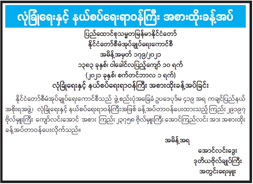 ဦးစီးဌာနနှင့် လုပ်ငန်းများ၏ ကြေညာချက်များ