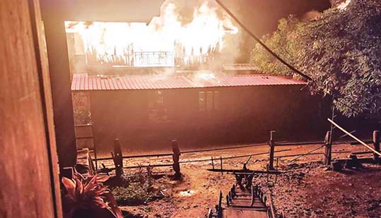 အကြမ်းဖက်သမားများသည် ကျေးရွာအတွင်းသို့ ဝင်ရောက်လာပြီးနောက် ကျေးရွာရှိ ရတနာရောင်ခြည်ဘုန်းတော်ကြီးကျောင်း အား သေနတ်များဖြင့် ပစ်ခတ်ခဲ့ပြီး ကျေးရွာအတွင်းရှိ လူနေအိမ်များအား မီးရှို့ဖျက်ဆီးခဲ့ရာ အိမ်ခြေ ၂၅ လုံးခန့် မီးလောင်ကျွမ်း ခဲ့ကြောင်းနှင့် ကျေးရွာနေ ဖိုးလွင် ၂၆ နှစ်(ဘ)ဦးကျော်လွင်၊ မောင်မိုး ၃၀ နှစ်(ဘ)ဦးမောင်အေး တို့အား ဖမ်းဆီးခေါ်ဆောင်၍ ကျောက်စီကျေးရွာအနီး၌ ပစ်ခတ်သတ်ဖြတ်ခဲ့ကြောင်း သိရှိရသည်။