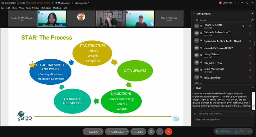 GEF သည် ကမ္ဘာလုံးဆိုင်ရာပတ်ဝန်းကျင်ပြဿနာများဖြေရှင်းရာတွင် ဖွံ့ဖြိုးဆဲနိုင်ငံများ ပိုမိုထိရောက်စွာပါဝင်နိုင်ရေးအတွက် လိုအပ်သည့်ရန်ပုံငွေများကို လေးနှစ်တစ်ကြိမ်လျာထား ချက်များအတိုင်း စီမံကိန်းများလျှောက်ထားခွင့်ပြုလျက်ရှိရာ GEF-8 Replenishment Cycle ရန်ပုံငွေထောက်ပံ့ရေးဆိုင်ရာအစီအမံများအတွက် ရန်ပုံငွေလျှောက်ထားခြင်းဆိုင်ရာ မဟာဗျူဟာ၊ အစီအစဉ်များနှင့် လမ်းညွှန်ချက်များချမှတ်နိုင်ရန် ရေးဆွဲလျက်ရှိသဖြင့် ဦးတည်ချက်များ၊ ဦးစားပေးကဏ္ဍများ၊ စီမံချက်/ စီမံကိန်း များနှင့် ရည်မှန်းချက်များ စသည်တို့နှင့်စပ်လျဉ်း၍ အာရှဒေသတွင်းနိုင်ငံများ၏လိုအပ်ချက်များ၊ သဘောထားမှတ်ချက်များကို အာရှဒေသကိုယ် စားတင်ပြပေးနိုင်ရေး ဆွေးနွေးညှိနှိုင်းကြသည်။