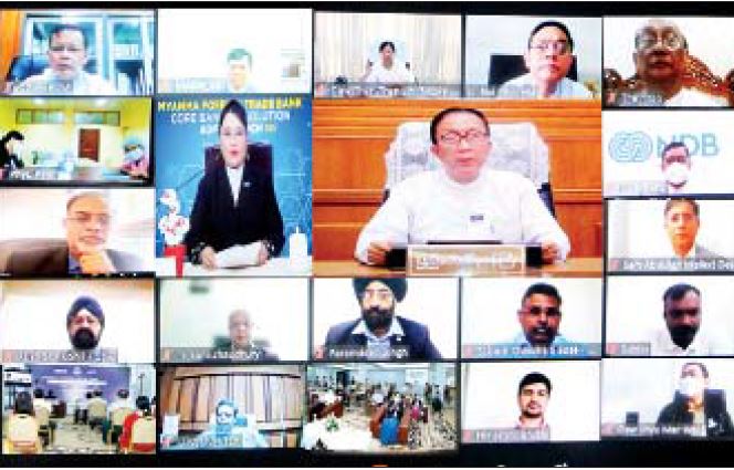 စီမံကိန်းနှင့်ဘဏ္ဍာရေးဝန်ကြီးဌာန မြန်မာ့နိုင်ငံခြား ကုန်သွယ်မှုဘဏ်၏ Core Banking and Trade Finance & Enterprise Resource Planning (ERP) system တို့ကို စတင်အသုံးပြုခြင်း မိတ်ဆက်ပွဲ အခမ်းအနားကို ယနေ့နံနက် ၁၁ နာရီက ရန်ကုန်မြို့ မြန်မာ့နိုင်ငံခြံကုန်သွပ်သက် (ရုံးချုပ်) အစည်းအဝေးခန်းမ၌ Virtual စနစ်ဖြင့် ကျင်းပသည်။