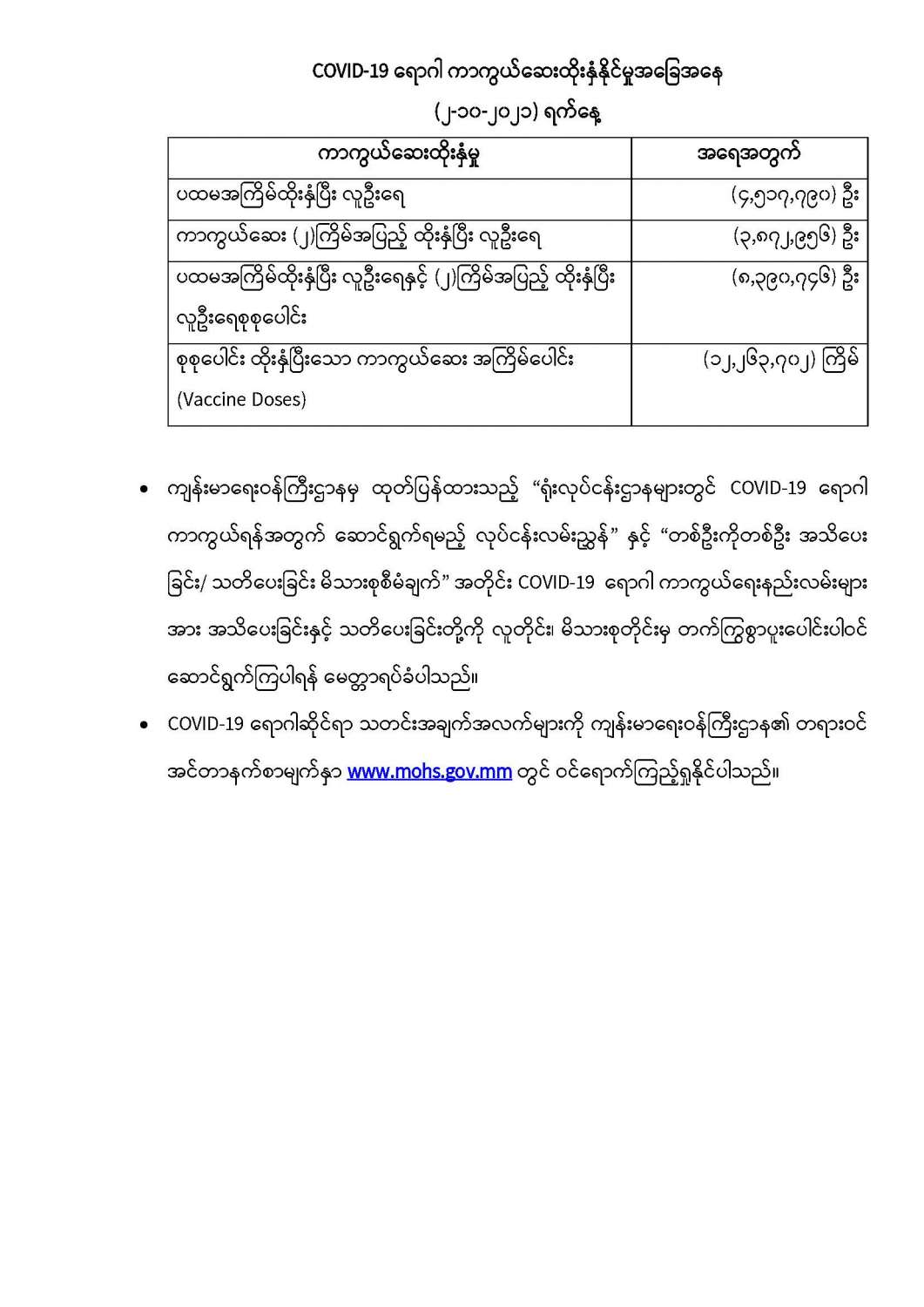COVID-19 ရောဂါ စောင့်ကြပ်ကြည့်ရှုမှုနှင့်ပတ်သက်၍ သတင်းထုတ်ပြန်ခြင်း (၃-၁၀-၂၀၂၁) ရက်နေ့၊ ည (၈:၀၀)နာရီ 10/03/2021