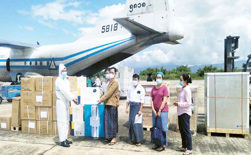 ကိုဗစ် - ၁၉ ရောဂါ ဓာတ်ခွဲအတည်ပြု ပိုးတွေ့လူနာများနှင့် သီးသန့်စောင့်ကြည့်ရမည့်သူများအား တပ်မတော်ဆေးရုံများ၊ ပြည်သူ့ဆေးရုံများ၊ ကျန်းမာရေးဌာနများနှင့် ကိုဗစ်စင်တာများတွင် ကျန်းမာရေးစောင့်ရေှာက်မှု လုပ်ငန်းများကို တပ်မတော်သား ဆရာ၀န်များ၊ ကျန်းမာရေး ၀န်ထမ်းများ၊ လူမှုရေး အသင်းအဖွဲ့များပူးပေါင်း၍ အင်တိုက်အားတိုက် ဆောင်ရွက်ပေး လျက်ရှိရာ ၎င်းလုပ်ငန်းများတွင် အထောက်အကူ ဖြစ်စေရန်အတွက် ကိုဗစ်-၁၉ ရောဂါ ကာကွယ်ဆေး Sinopharm များအား သတ်မှတ် အအေးလမ်းကြောင်း စံချိန်စံညွှန်းများအတိုင်း တပ်မတော်လေယာဉ်များ၊ မော်တော်ယာဉ်များဖြင့် ပို့ဆောင်ပေးလျက်ရှိသည်။