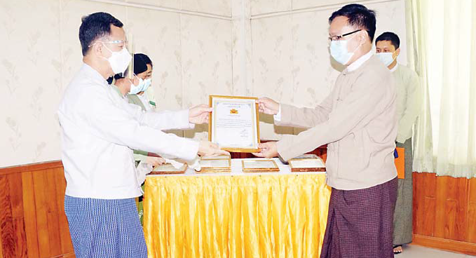 နေပြည်တော်တွင် Coronavirus Disease 2019 (COVID-19) ကာကွယ်၊ ထိန်းချုပ်၊ ကုသရေး လုပ်ငန်း များဖြစ်သော Quarantine Center နှင့် Positive Center များဖွင့်လှစ်ဆောင်ရွက်ရာတွင် လိုအပ်သော  ခုတင်များ၊ Oxygen အိုးများနှင့် အခြားဆက်စပ်ပစ္စည်းများကို ကူညီပံ့ပိုးဆောင်ရွက်ပေးခဲ့သည့် ဌာန/ အဖွဲ့ အစည်းများ၊ တက္ကသိုလ်များ၊ သင်တန်းကျောင်းများ၊ ကိုယ်ပိုင်ကျောင်းများကို ဂုဏ်ပြုမှတ်တမ်း လွှာပေးအပ်ခြင်း အခမ်းအနားကို ယနေ့နံနက် ၁၁နာရီတွင် နေပြည်တော်ကောင်စီရုံး အစည်းအဝေး ခန်းမ ၌ ကျင်းပသည်။