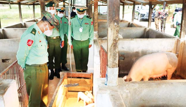 ကိုဗစ်-၁၉ ရောဂါ တတိယလှိုင်းဖြစ်ပွားမှုကြောင့် ရောဂါကာကွယ်၊ ထိန်းချုပ်၊ ကုသရေး လုပ်ငန်းများ ဆောင်ရွက်နေချိန်တွင် ဒေသတွင်းစားနပ်ရိက္ခာဖူလုံရေးနှင့် ပြည်သူများ၏ စားသောက်ရေးကို အထောက်အကူဖြစ်စေရန်အတွက် ယနေ့တွင် တြိဂံဒေသ တိုင်းစစ်ဌာနချုပ် တိုင်းမှူး ဗိုလ်မှူးချုပ် မျိုးမင်းထွန်းနှင့်အဖွဲ့ဝင်များသည် ရှမ်းပြည်နယ်(အရှေ့ပိုင်း)၊ ကျိုင်းတုံ တပ်နယ်ရှိ  တပ်ရင်း/တပ်ဖွဲ့များ၏ စိုက်ပျိုးရေးလုပ်ငန်း၊ မွေးမြူရေးလုပ်ငန်းများကို သွားရောက် ကြည့်ရှုသည်။
