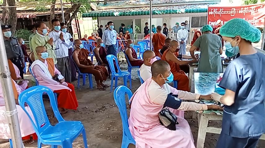 ကျန်းမာရေးဝန်ကြီးဌာနသည် ကိုဗစ်-၁၉ ရောဂါ ကာကွယ်ဆေးထိုးနှံခြင်းကို ဦးတည် အုပ်စုများနှင့် ဦးစားပေးအစီအစဉ်များအလိုက် အရှိန်အဟုန်မြှင့်တင်ဆောင်ရွက် လျက်ရှိရာ သီတင်းကျွတ်ရက်မြတ်ကာလအတွင်း သာသနာ့နွယ်ဝင် ဦးတည်အုပ်စုဖြစ်သည့် ဆရာ တော်/ သံဃာတော်များ၊ သီလရှင်များနှင့် ကပ္ပိယများအား ကိုဗစ်-၁၉ ရောဂါ ကာကွယ်ဆေး ထိုးနှံပေး နေမှုများကို အရှိန်အဟုန်မပျက်ဆက်လက်ဆောင်ရွက်လျက်ရှိသည်။