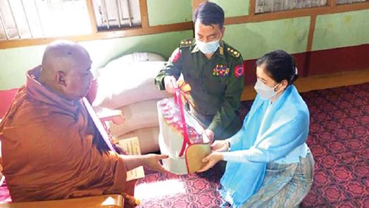 ကိုဗစ်-၁၉ ရောဂါ ကြိုတင်ကာကွယ်ရေးလုပ်ငန်းများ ဆောင်ရွက်နေသည့်ကာလ အတွင်း ဆွမ်းကိစ္စရပ်များ အဆင်ပြေစေရန်ရည်ရွယ်၍ တပ်မတော်(ကြည်း၊ရေ၊ လေ) အရာရှိ၊ စစ်သည်၊ အရာထမ်း၊ အမှုထမ်းများနှင့် စေတနာရှင်အလှူရှင်များက မြို့နယ် အသီးသီးရှိ ဘုန်းတော်ကြီးကျောင်းများ၊ သာသနာနွယ်ဝင် သီလရှင်ကျောင်းများနှင့် ဘာသာရေးကျောင်းများသို့ ဆွမ်းဆန်တော်၊ ဆီ၊ ဆား၊ ပဲ အမယ်(၄)မျိုးနှင့် လှူဖွယ် ပစ္စည်းများလှူဒါန်းခြင်း၊ နေ့ဆွမ်းများဆက်ကပ်လှူဒါန်းခြင်းနှင့် ကျန်းမာရေး စစ်ဆေး ပေးခြင်းများကို ဆောင်ရွက်လျက်ရှိသည်။
