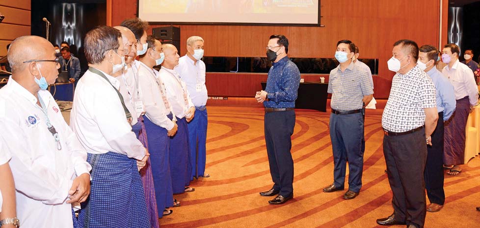 ရှေးဦးစွာ ပြည်ထောင်စုဝန်ကြီးသည် မြို့မတူရိယာအသင်းကြီးမှ အနုပညာရှင်များအား ရင်းရင်းနှီးနှီး တွေ့ဆုံနှုတ်ဆက်သည်။