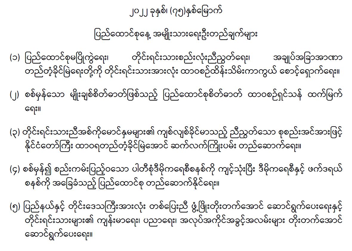 ၂၀၂၂ ခုနှစ်၊ (၇၅)နှစ်မြောက် ပြည်ထောင်စုနေ့ အမျိုးသားရေးဦးတည်ချက်များ