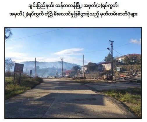 ၎င်းအပြင် ချင်းပြည်နယ်၊ ထန်တလန်မြို့အတွင်း လုံခြုံရေးဆောင်ရွက်နေသော လုံခြုံရေး တပ်ဖွဲ့ဝင်များအား အောက်တိုဘာ ၂၉ ရက် နံနက် ၁၁ နာရီ ၄၅ မိနစ်ခန့်တွင် အမှတ်(၁)ရပ်ကွက်ရှိ လမ်းဆုံအနီး၌ PDF အကြမ်းဖက်သမား ၅ ဦးခန့်က လက်လုပ်ဆွဲမိုင်း ၃ လုံး ဖောက်ခွဲ၍ လက်နက်ငယ်များဖြင့် ပစ်ခတ် တိုက်ခိုက်ခဲ့သဖြင့် လုံခြုံရေးတပ်ဖွဲ့ဝင်များက ပြန်လည်ပစ်ခတ်ခဲ့ရာ နံနက် ၁၁ နာရီ ၅၀ မိနစ်တွင် အကြမ်းဖက်သမားများသည် အရှေ့မြောက်ဘက်သို့ ဆုတ်ခွာ ထွက်ပြေး သွားခဲ့ပြီး ဆုတ်ခွာထွက်ပြေးရာနောက်သို့ လုံခြုံရေးတပ်ဖွဲ့ဝင်များက လိုက်လံရှင်း လင်းတိုက်ခိုက်စဉ် အကြမ်းဖက်သမားများသည် အမှတ်(၁)ရပ်ကွက်၊ ဘောလုံးကွင်း အနီးရှိ နေအိမ်များနှင့် အချို့မီးလောင်လွယ်သည့်ပစ္စည်းများကို စုပုံမီးရှို့ဖျက်ဆီး၍ ဆုတ်ခွာသွားခဲ့သည်။