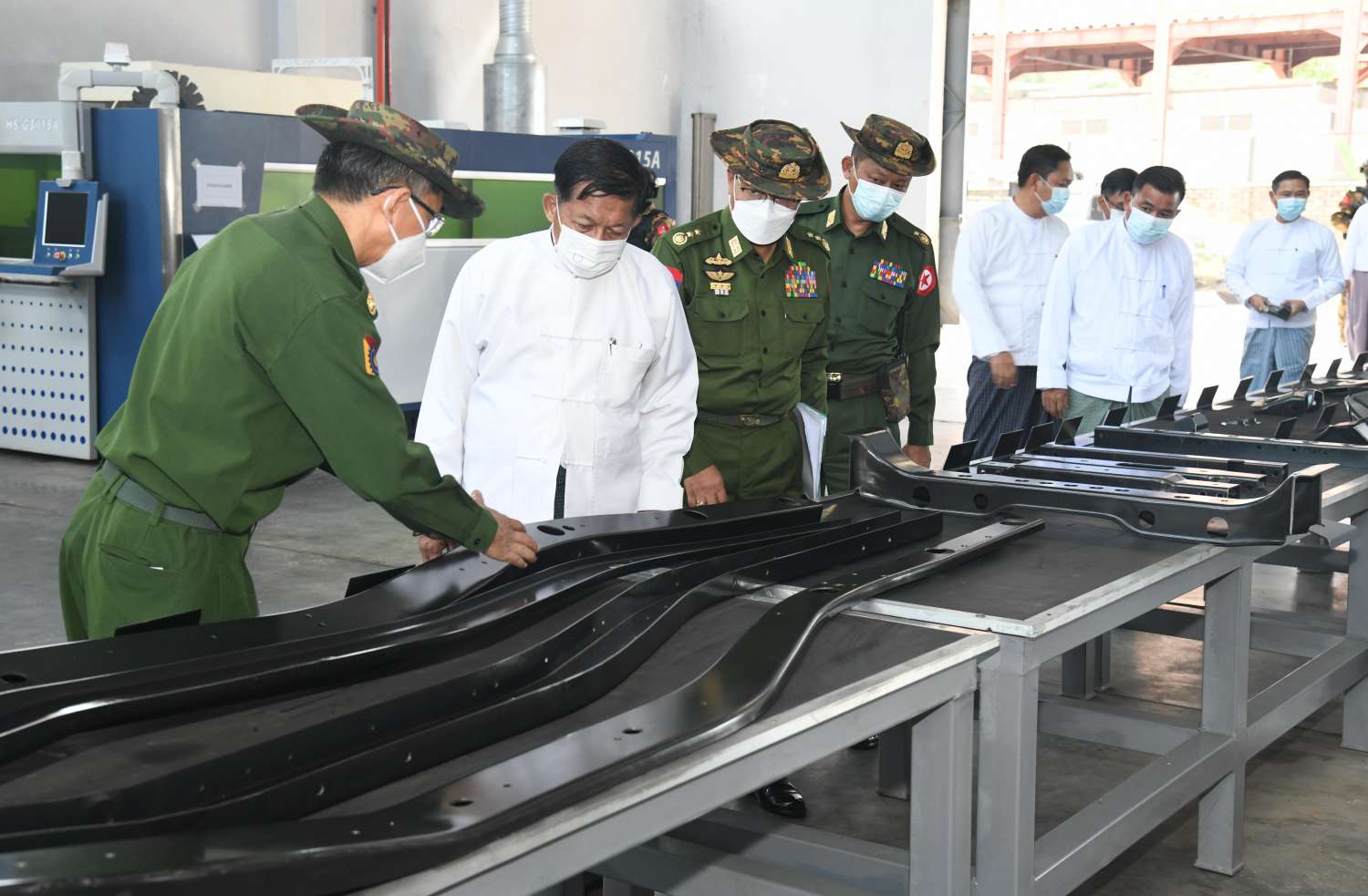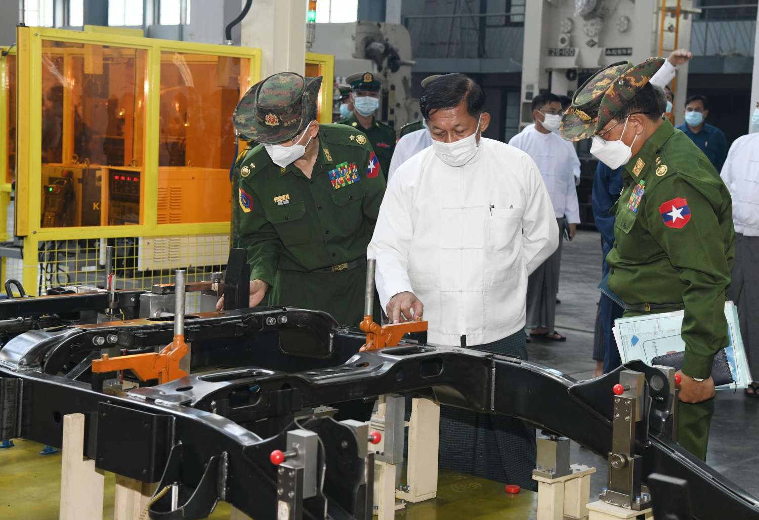 ထို့နောက် နိုင်ငံတော်စီမံအုပ်ချုပ်ရေးကောင်စီဥက္ကဋ္ဌ နိုင်ငံတော်ဝန်ကြီးချုပ်နှင့် အဖွဲ့ဝင်များသည် စက်ရုံအတွင်း မော်တော်ယာဉ်နှင့် ဆက်စပ်ပစ္စည်းများအား ခေတ်မီစက်ကိရိယာများနှင့် နည်းပညာများ အသုံးပြု၍ ထုတ်လုပ်လျက်ရှိသည့် အခြေအနေများကို လှည့်လည်ကြည့်ရှုကြရာ တာဝန်ရှိသူများက လိုက်လံရှင်းလင်း တင်ပြကြပြီး နိုင်ငံတော် စီမံအုပ်ချုပ်ရေးကောင်စီဥက္ကဋ္ဌ နိုင်ငံတော်ဝန်ကြီးချုပ်က စက်ရုံဝန်ထမ်းများအတွက် ချီးမြှင့်ငွေများ ပေးအပ်သည်။