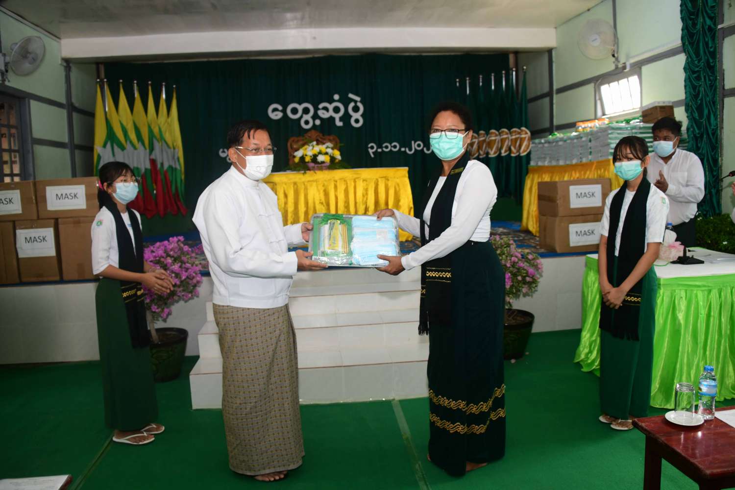 ဦးစွာ နိုင်ငံတော်စီမံအုပ်ချုပ်ရေးကောင်စီဥက္ကဋ္ဌ နိုင်ငံတော်ဝန်ကြီးချုပ်နှင့် အဖွဲ့ဝင်များသည် လေ့ကျင့်ရေးအလယ်တန်းကျောင်းသို့ ရောက်ရှိကြပြီး ကျောင်းအုပ်ဆရာမကြီးနှင့် ကျောင်းသား၊ ကျောင်းသူများအား ရင်းရင်းနှီးနှီးနှုတ်ဆက်သည်။ ထို့နောက် ကျောင်းရန်ပုံငွေနှင့် ကိုဗစ်-၁၉ ရောဂါ ကာကွယ်ရေးပစ္စည်းများကို ပေးအပ်ကာ ကျောင်းအတွင်း လှည့်လည်ကြည့်ရှု၍ ကျောင်းပြန်လည် ပြုပြင်မွမ်းမံနိုင်ရေးအတွက် လိုအပ်သည်များဖြည့်ဆည်း ဆောင်ရွက်ပေး သည်။