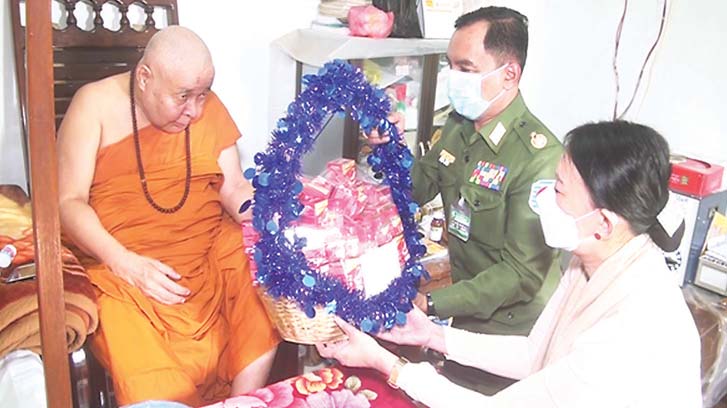 ကိုဗစ်-၁၉ ရောဂါ ကြိုတင်ကာကွယ်ရေးလုပ်ငန်းများ ဆောင်ရွက်နေသည့်ကာလ အတွင်း ဆွမ်းကိစ္စရပ်များ အဆင်ပြေစေရန်ရည်ရွယ်၍ တပ်မတော်(ကြည်း၊ရေ၊ လေ) အရာရှိ၊ စစ်သည်၊ အရာထမ်း၊ အမှုထမ်းများနှင့် စေတနာရှင်အလှူရှင်များက မြို့နယ်အသီးသီးရှိ ဘုန်းတော်ကြီး ကျောင်းများ၊ သာသနာနွယ်ဝင် သီလရှင်ကျောင်းများနှင့် ဘာသာရေးကျောင်းများသို့ ဆွမ်းဆန်တော်၊ ဆီ၊ ဆား၊ ပဲ အမယ်(၄)မျိုးနှင့် လှူဖွယ် ပစ္စည်းများလှူဒါန်းခြင်း၊ နေ့ဆွမ်းများ ဆက်ကပ်လှူဒါန်းခြင်းနှင့် ကျန်းမာရေး စစ်ဆေး ပေးခြင်းများကို ဆောင်ရွက်လျက်ရှိသည်။