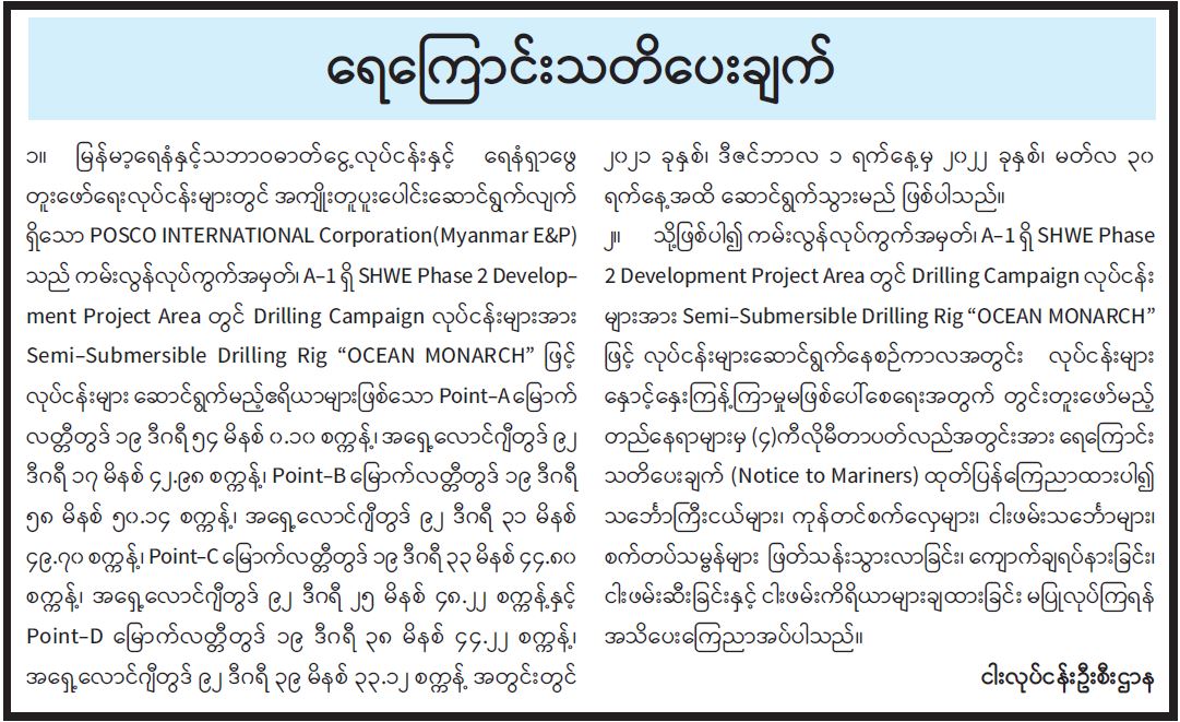 ဦးစီးဌာနနှင့် လုပ်ငန်းများ၏ ကြေညာချက်များ