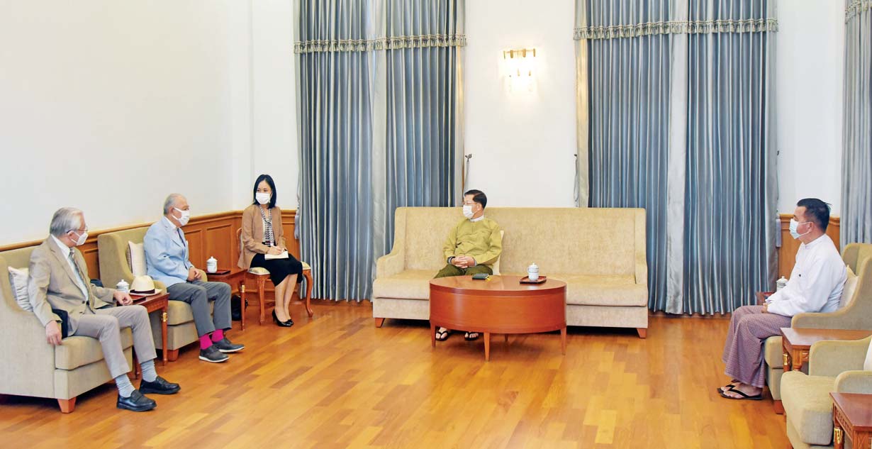 နိုင်ငံတော်စီမံအုပ်ချုပ်ရေးကောင်စီဥက္ကဋ္ဌ၊ နိုင်ငံတော်ဝန်ကြီးချုပ် ဗိုလ်ချုပ်မှူးကြီး မင်းအောင်လှိုင်သည် မြန်မာနိုင်ငံ အမျိုးသား ပြန်လည်သင့်မြတ်ရေးဆိုင်ရာ ဂျပန်အစိုးရ၏ အထူးကိုယ်စားလှယ်နှင့် နီပွန်ဖောင်ဒေးရှင်းဥက္ကဋ္ဌ H.E.Mr.Yohei SASAKAWA အား ယနေ့မွန်းလွဲပိုင်းတွင် နေပြည်တော်ရှိ တပ်မတော်ဧည့်ရိပ်သာ၌ လက်ခံတွေ့ဆုံသည်။