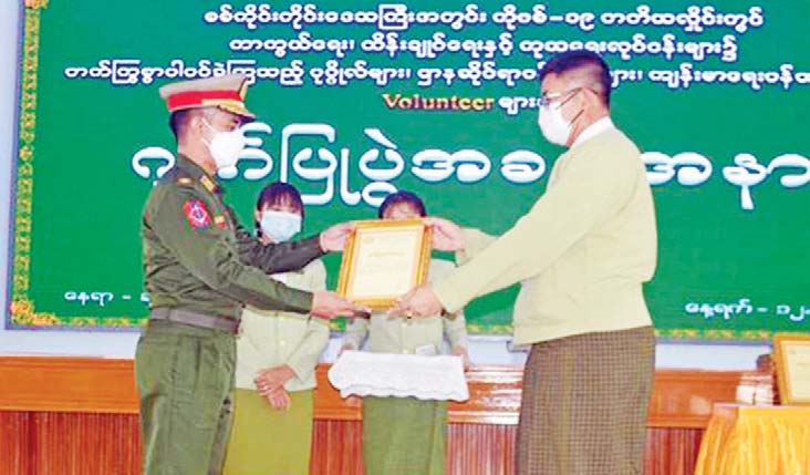စစ်ကိုင်းတိုင်းဒေသကြီးအတွင်း ကိုဗစ်-၁၉ ရောဂါကာကွယ်၊ ထိန်းချုပ်၊ ကုသရေး လုပ်ငန်းများတွင် တက်ကြွစွာပါဝင်ဆောင်ရွက်ခဲ့သူများအား ဂုဏ်ပြု