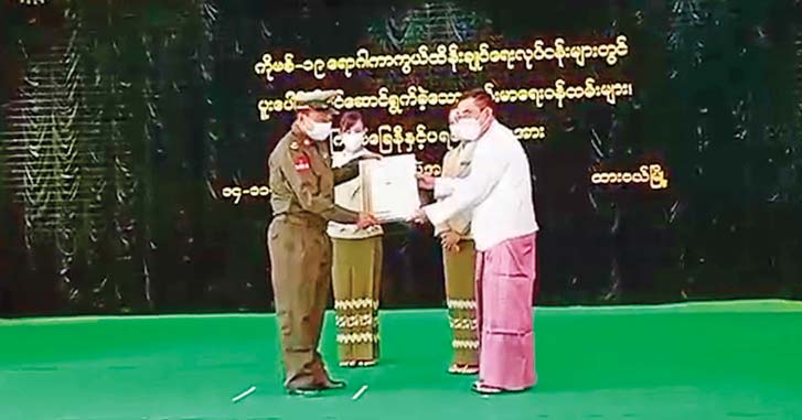 ထို့နောက် ကိုဗစ်-၁၉ ရောဂါ ကာကွယ်၊ ထိန်းချုပ်၊ ကုသရေး လုပ်ငန်းများတွင် စွမ်းစွမ်းတမံကူညီ ဆောင်ရွက်ပေးခဲ့ကြသည့် ကျန်းမာရေးဝန်ထမ်းများ၊ လူမှုရေးအသင်းအဖွဲ့များနှင့် ဌာနဆိုင်ရာ ဝန်ထမ်းများအား ဝန်ကြီးချုပ်၊ ဒုတိယတိုင်းမှူးနှင့် တာဝန်ရှိသူတို့က ဂုဏ်ပြုမှတ်တမ်း လွှာများနှင့် ဂုဏ်ပြုဆုငွေများ ပေးအပ်ချီးမြှင့်ခဲ့ ကြကြောင်း သတင်းရရှိသည်။