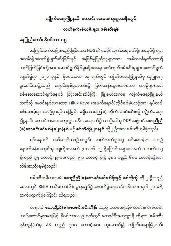 ကျိုက်မရောမြို့နယ်၊ တောင်ကလေးကျေးရွာအနီးတွင် လက်နက်/ခဲယမ်းများ ဖမ်းဆီးရမိ