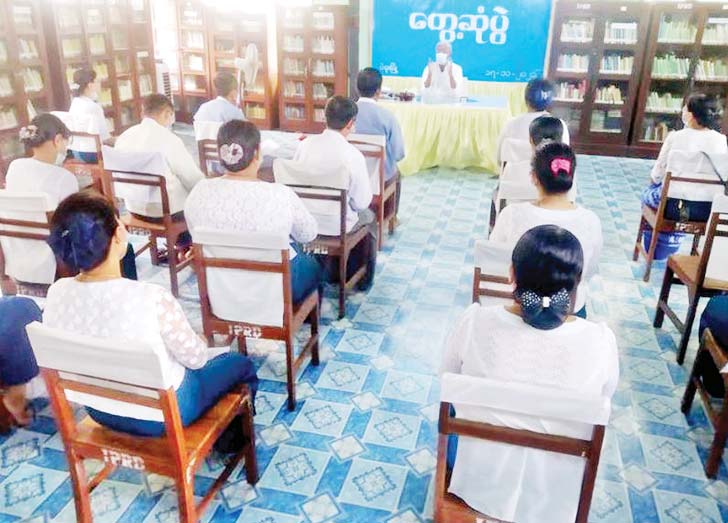 ထို့နောက် ပဲခူးခရိုင် ပြန်ကြားရေးနှင့် ပြည်သူ့ ဆက်ဆံရေးဦးစီးဌာနရှိ စာကြည့်တိုက်နှင့် ကလေး စာဖတ်ခန်း ပြင်ဆင်ထားရှိမှုကို ကြည့်ရှုစစ်ဆေးပြီး လူထုအခြေပြုဗဟိုဌာန (Community Center) ခန်းမ၌ တိုင်းဒေသကြီးဦးစီးမှူး၊ ဒုတိယညွှန်ကြား ရေးမှူး၊ ခရိုင်ဦးစီးမှူးများ၊ မြို့နယ်ဦးစီးမှူးများနှင့် ဝန်ထမ်းများ၊ ထပ်ဆင့်လွှင့်စက်ရုံမှ စက်ရုံမှူးနှင့် ဝန်ထမ်းများအား တွေ့ဆုံသည်။