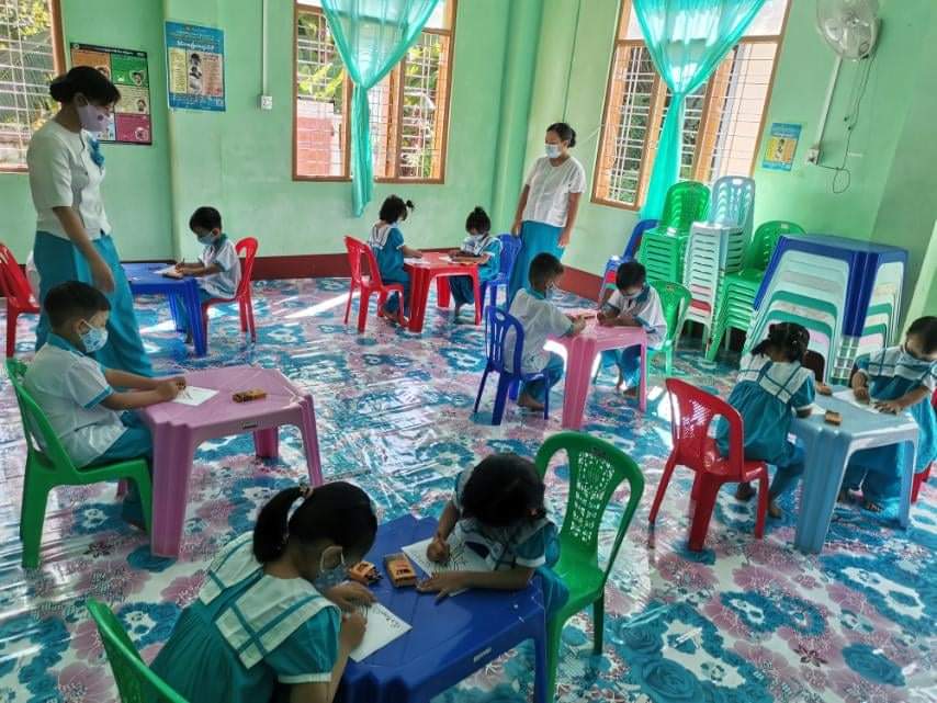 ကိုဗစ်-၁၉ ကပ်ရောဂါအန္တရာယ်ကြောင့် ၂၀၂၀ ပြည့်နှစ်၊ မတ် ၁၆ ရက်မှစ၍ ခေတ္တ ပိတ်ထားခဲ့ရသော လူမှုဝန်ထမ်းဦးစီးဌာန မူလတန်းကြို ကျောင်းများနှင့် လူမှုဝန်ထမ်း ဦးစီးဌာနက ကြီးကြပ်ဆောင်ရွက်သော ကိုယ့်အားကိုယ်ကိုးမူလတန်းကြိုကျောင်းများ၊ ပုဂ္ဂလိ က မူလတန်းကြို ကျောင်းများကို ကိုဗစ်-၁၉ ရောဂါ ကာကွယ်၊ ထိန်းချုပ်၊ ကုသရေး ဗဟို ကော်မတီ၏ အတည်ပြုချက်အရ ရှေးဦးအရွယ် ကလေးသူငယ်ပြုစုပျိုးထောင်ရေးနှင့် ဖွံ့ဖြိုးရေး လုပ်ငန်းဗဟိုကြီးကြပ်ရေးအဖွဲ့၏ နိုဝင်ဘာ ၁၁ ရက်စွဲပါ ညွှန်ကြားချက်အမှတ် ၁/၂၀၂၁ဖြင့် ကျန်းမာရေးဝန်ကြီးဌာနက ထုတ်ပြန်ထားရှိသည့် ကိုဗစ်-၁၉ ရောဂါ ကာကွယ် တားဆီးရေး ဆိုင်ရာ စည်းကမ်းချက်များနှင့်အညီ နိုဝင်ဘာ ၁၅ ရက်မှစတင်၍ ပြန်လည် ဖွင့်လှစ်ခဲ့ပြီး ဖြစ်သည်။