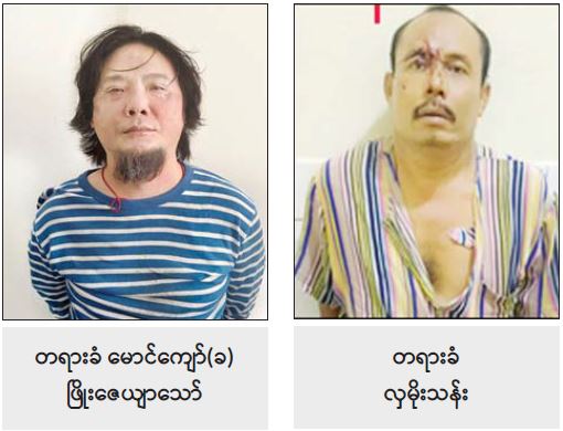 တရားခံ မောင်ကျော်(ခ)ဖြိုးဇေယျာသော်၏ ထွက်ဆိုချက်အရ သင်္ဃန်းကျွန်းမြို့နယ်၊ (ဇ)မြောက်ရပ်ကွက်၊ ပြည်သာယာလမ်းသွယ်(၂)၊ ငွေတိုက်စိုးခြံ၊ အမှတ်(၁၄၂) အား ရှာဖွေနေစဉ် နိုဝင်ဘာလ ၁၉ ရက် ညပိုင်းတွင် သိမ်းဆည်းထားသော လက်နက်/ ခဲယမ်းများအား သယ်ယူရန် လာရောက်သော လှမိုးသန်း(၄၂)နှစ်၊ အောင်ဝင်းနိုင် (၄၅)နှစ်တို့ ၂ ဦးအား Sigsauer ပစ္စတို ၁ လက်၊ ကျည် ၁၀ တောင့်၊ Probox မော်တော်ယာဉ် ၁ စီးနှင့်အတူ ထပ်မံဖမ်းဆီးရမိခဲ့ပြီး တရားခံ အောင်ဝင်းနိုင် ၏ ထွက်ဆိုချက်အရ အင်းစိန်မြို့နယ်၊ ကျော်ဇေယျ(၂)လမ်း၊ စဉ့်ငူရပ်ကွက်၊ အမှတ် (၈၁၈/ဘီ)အား ဝင်ရောက်ရှာဖွေခဲ့ရာ ၉ မမကျည် ၆၀ တောင့်၊ လက်လုပ်ဗုံး ၁ လုံး၊ လမ်းလျှောက်စကားပြောစက် ၄ လုံး၊ မှန်ပြောင်း ၁ လက်၊ ကျည်ကာအင်္ကျီ ၂ ထည်နှင့် ဓားရှည် ၂ ချောင်းတို့အား သိမ်းဆည်းရမိခဲ့သည်။