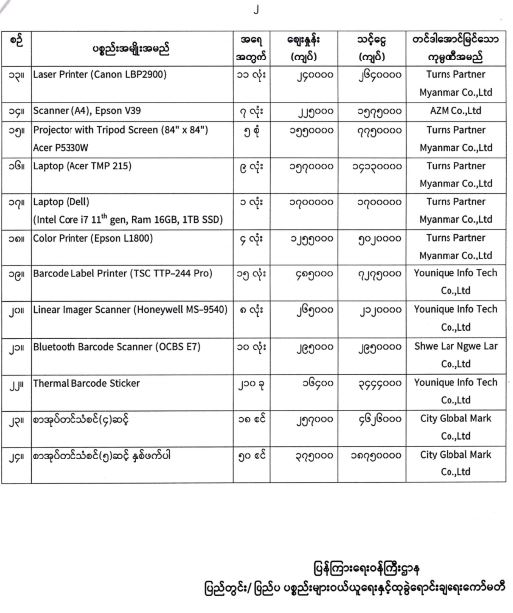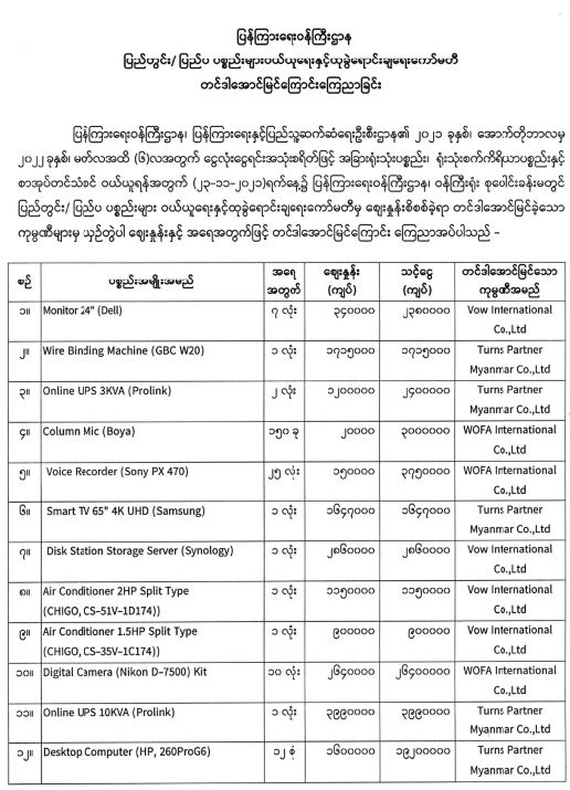 ဝန်ကြီးဌာန ကြေညာချက်များ