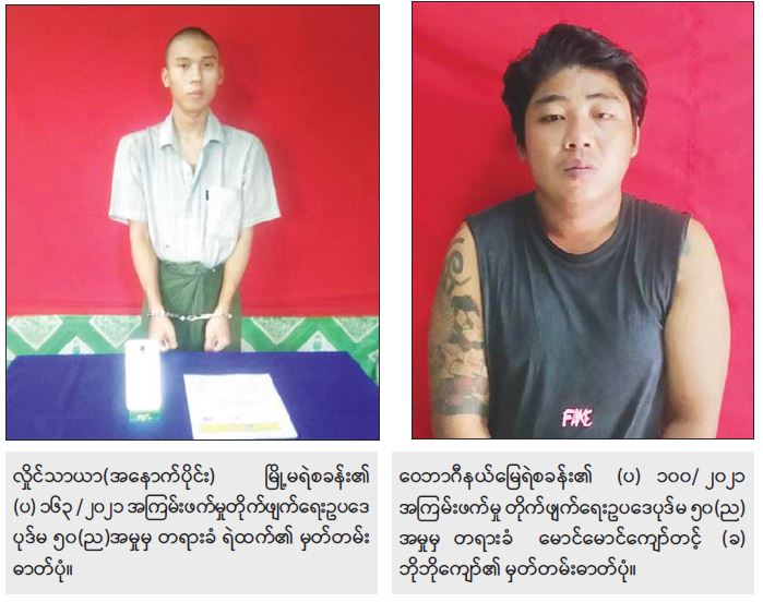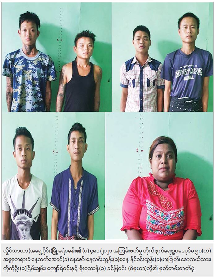 ရန်ကုန်တိုင်းဒေသကြီး၊ လှိုင်သာယာ(အရှေ့ပိုင်း)မြို့နယ်၊ ရွှေလင်ပန်း ကျေး ရွာ၌ ကျော်မိုးနိုင်(ခ)မောင်နိုင်(ဘ)ဦးမြင့်ဦး အပါအဝင် ၁၈ ဦးသည် စက်တင်ဘာ ၂၈ ရက် ည ၁၀ နာရီခန့်တွင် ကျူးကျော်နေအိမ်နှင့် အိမ်ခြံမြေကိစ္စများတွင် အခကြေး ငွေရယူ၍ နေအိမ်များနှင့် ခြံစည်းရိုးများအား ဖျက်ဆီးခြင်း၊ နေအိမ်အတွင်းရှိ လူများ အား တုတ်၊ ဓားများ ကိုင်ဆောင်၍ အကြမ်းဖက်တိုက်ခိုက် ခြိမ်းခြောက်ခြင်းစသည့် ဉပဒေမဲ့လုပ်ရပ်များကို ကျူးလွန်ခဲ့သည့် အတွက်ကြောင့် အကြမ်းဖက်မှုတိုက်ဖျက် ရေးဉပဒေပုဒ်မ ၅၀(က)ဖြင့်လည်းကောင်း၊ ရဲထက်(ဘ) ဦးသိန်းဦး သည် ဧပြီ ၁၀ ရက်နေ့မှ ၁၇ ရက်အထိ တိုင်းရင်းသားလက်နက်ကိုင်အဖွဲ့ နယ်မြေအတွင်း သင်တန်းတက်ရောက်ခဲ့သဖြင့် ပြည်ထောင်စုသမ္မတမြန်မာနိုင်ငံတော် အကြမ်းဖက် မှုတိုက်ဖျက်ရေး ဗဟိုအဖွဲ့၊ အမိန့်ကြေညာစာအမှတ်၊(၂/၂၀၂၁)အရ အကြမ်းဖက်မှု တိုက်ဖျက်ရေးဉပဒေပုဒ်မ ၅၀(ည)ဖြင့် လည်းကောင်း၊ မောင်မောင်ကျော်တင့်(ခ) ဘိုဘိုကျော် (ဘ)ဦးလှတင့်သည် ဖေဖော်ဝါရီလမှစ၍ CRPH၊ NUG၊ PDF အမည်ခံ အကြမ်းဖက်အဖွဲ့များအား ငွေကြေးဆိုင်ရာ ထောက်ပံ့ပေးခဲ့မှုဖြင့် အကြမ်းဖက်မှု တိုက်ဖျက်ရေး ဉပဒေပုဒ်မ ၅၀(ည)ဖြင့် လည်းကောင်း၊ ရဲထက်အောင်(ခ)ရဲထက် (ဘ)ဦးညွန့်အောင်သည် ဖေဖော်ဝါရီလမှစ၍ ရန်ကုန်တိုင်းဒေသကြီး အတွင်း ဆူပူအကြမ်းဖက်မှု ဖြစ်စဉ်များတွင် တတ်ကြွစွာပါဝင်လှုပ်ရှားခြင်း၊ အပြစ်မဲ့ပြည်သူ များအား ဒလန်ဟု စွပ်စွဲ ပြောဆိုသတ်ဖြတ်ခြင်းတို့တွင် ပါဝင်ခြင်း၊ အကြမ်းဖက်ဗုံးခွဲ တိုက်ခိုက်ခြင်းများကို ဆောင်ရွက်ခဲ့သဖြင့် အကြမ်းဖက်မှုတိုက်ဖျက်ရေး ဥပဒေပုဒ်မ ၅၀(ဈ)ဖြင့် လည်းကောင်း၊ အောင်မင်းသူ(ခ)ကိုသူ(ဘ)ဦးထိန်ဝင်း အပါအဝင် ၈ ဦးသည် ဧပြီ ၂၈ ရက်မှစ၍ တိုင်းရင်းသား လက်နက်ကိုင်အဖွဲ့ နယ်မြေအတွင်း သင်တန်းတက်ရောက်ခြင်း၊ အုပ်ချုပ်ရေးမှူးရုံးများအား ဖောက်ခွဲဖျက်ဆီးခြင်း များကို ဆောင်ရွက်ခဲ့ပြီး ပြည်ထောင်စုသမ္မတမြန်မာနိုင်ငံတော် အကြမ်းဖက်မှု တိုက်ဖျက်ရေးဗဟိုအဖွဲ့၊ အမိန့်ကြေညာစာအမှတ်၊(၂/၂၀၂၁)အရ အကြမ်းဖက်မှု တိုက်ဖျက်ရေး ဥပဒေပုဒ်မ ၅၀(က)ဖြင့် လည်း ကောင်း စစ်အုပ်ချုပ်ရေး (Martial Law) စစ်ခုံရုံးဖွဲ့၍ စစ်ဆေးမှုများဆောင်ရွက်ခဲ့ရာ နိုဝင်ဘာ ၂၃ ရက်တွင် ၎င်းတို့ ၂၉ ဦးအား “ထောင်ဒဏ်တစ်သက် ”ပြစ်ဒဏ်အား အသီးသီး အမိန့်ချမှတ်လိုက်ကြောင်း သိရှိရသည်။