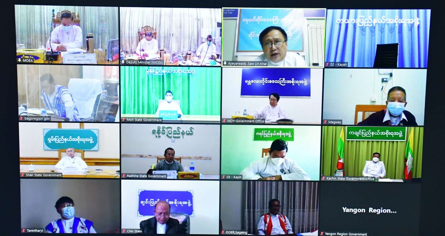 တိုင်းရင်းသားလူမျိုးများရေးရာဝန်ကြီးဌာန၊ တိုင်းဒေသကြီး/ ပြည်နယ်အလိုက် တိုင်းရင်းသားရေးရာ ကိစ္စရပ်များ ပူးပေါင်းဆောင်ရွက်နိုင်ရေး ပုံမှန်လုပ်ငန်းညှိနှိုင်း အစည်းအဝေးကို ယနေ့နံနက် ၁၀ နာရီခွဲတွင် တိုင်းရင်းသားလူမျိုးများရေးရာဝန်ကြီးဌာန အစည်းအဝေးခန်းမ၌ ကိုဗစ်-၁၉ တားဆီးကာကွယ်ရေး၊ ကျန်းမာရေးဆိုင်ရာ ညွှန်ကြားချက်များနှင့်အညီ ကျင်းပသည်။ ပြည်ထောင်စုဝန်ကြီး ဦးစောထွန်းအောင်မြင့်၊ ဒုတိယဝန်ကြီး ဦးဇော်အေးမောင်၊ တိုင်းဒေသကြီး/ ပြည်နယ် တိုင်းရင်းသားရေးရာဝန်ကြီးများနှင့် တာဝန်ရှိ သူများက Online စနစ်ဖြင့် တက်ရောက်ခဲ့ကြသည်။