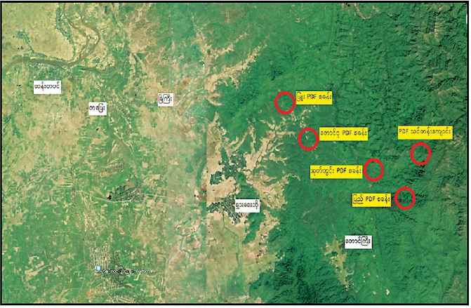 မတ်လ ၃၁ ရက်တွင် တောင်ငူမြို့၊ အမေ့အိမ်ဟိုတယ်၌ အကြမ်းဖက် UNRA အဖွဲ့ဝင် တရားခံ မျိုးမြင့်အောင်(ခ)အရှည်ကြီး(ခ)ဆံရှည်၊ ဩဂုတ်လ ၂၃ ရက်တွင် ဒဂုံဆိပ်ကမ်း မြို့နယ်၌ Music Zone KTV ၊ ကမာရွတ်၊ မြောက်ဥက္ကလာနှင့် သင်္ဃန်းကျွန်းမြို့နယ်တို့ရှိ EPC ရုံးများ အပါအဝင် ရန်ကုန်မြို့တွင်း ဖောက်ခွဲဖျက်ဆီးရေးလုပ်ငန်းများ ဆောင်ရွက်ခဲ့သော တရားခံများ ဖမ်းဆီးရမိမှု ဖြစ်စဉ်မှ ဝေယံသိန်း(ခ)ဗစ်တာနှင့် နိုဝင်ဘာလ ၁ ရက်တွင် တောင်ငူမြို့၌ ဖမ်းဆီးရမိ တရားခံ ကျော်ကျော်(ခ) ကချင်ကျော်ကျော်တို့၏ ထွက်ဆိုချက်များအရ ထန်းတပင်မြို့နယ်၊ တောကုန်း ကျေးရွာ၏ အရှေ့ဘက်တောင်ကုန်းများ၌ ပြည်မြို့နယ် NLD ပါတီမှ အမှတ်(၂)တိုင်းဒေသကြီး လွှတ်တော်ကိုယ်စားလှယ်ဟောင်း ကျော်ဇေယျ၏ ပြည်အကြမ်းဖက် PDF အဖွဲ့၊ တောင်ငူမြို့နယ် NLD ပါတီမှ အမှတ်(၂)တိုင်းဒေသကြီး လွှတ်တော်ကိုယ်စားလှယ်ဟောင်း မိုးမခ၏ တောင်ငူအကြမ်းဖက် PDF အဖွဲ့၊ ဖြူးမြို့နယ် NLD ပါတီမှ ပြည်သူ့လွှတ်တော်ကိုယ်စားလှယ်ဟောင်း ကျော်အေးဝင်း၏ ဖြူးအကြမ်းဖက် PDF အဖွဲ့များ သည် KNLA တပ်မဟာ(၂)မှ စစ်ဆင်ရေးမှူးအဆင့်ရှိ မောင်ရွှေနှင့် ညှိနှိုင်း၍ PDF အကြမ်းဖက်သင်တန်းများ ဖွင့်လှစ်၍ အဖျက်အမှောင့်လုပ်ငန်းများ ဆောင်ရွက်ကာ အပြစ်မဲ့ပြည်သူများအား လုပ်ကြံသတ်ဖြတ်ခြင်းများ ဆောင်ရွက်နေကြောင်း သိရှိရသဖြင့် တပ်မတော်က နယ်မြေစိုးမိုးရေး ဆောင်ရွက်ခဲ့ရာ PDF အကြမ်းဖက် စခန်းနေရာ ၅ နေရာအား ဖော်ထုတ်သိမ်းပိုက်ရရှိခဲ့ပြီး အဆိုပါစခန်းများအတွင်းမှ အကြမ်းဖက်သမား ၅ ဦး အပါအဝင် လက်နက်/ခဲယမ်းနှင့် ဆက်စပ်ပစ္စည်းများအား သိမ်းဆည်းရမိခဲ့ကြောင်း သိရှိရသည်။