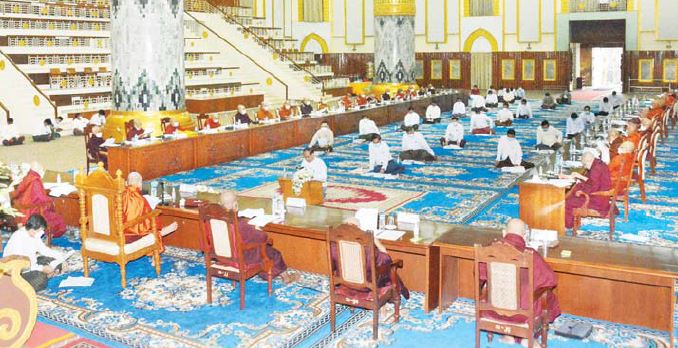 ယင်းနောက် ဝိနိစ္ဆယဆိုင်ရာ ကိစ္စများ၊ သာသနာ့ရေးရာ ကိစ္စ များ၊ ပညာရေးဆိုင်ရာကိစ္စများကို တင်ပြလျှောက်ထားရာတာဝန်ကျ တော်မူကြပြီး အစည်းအဝေးကို မွန်းလွဲပိုင်းတွင် ရပ်နားသည်။